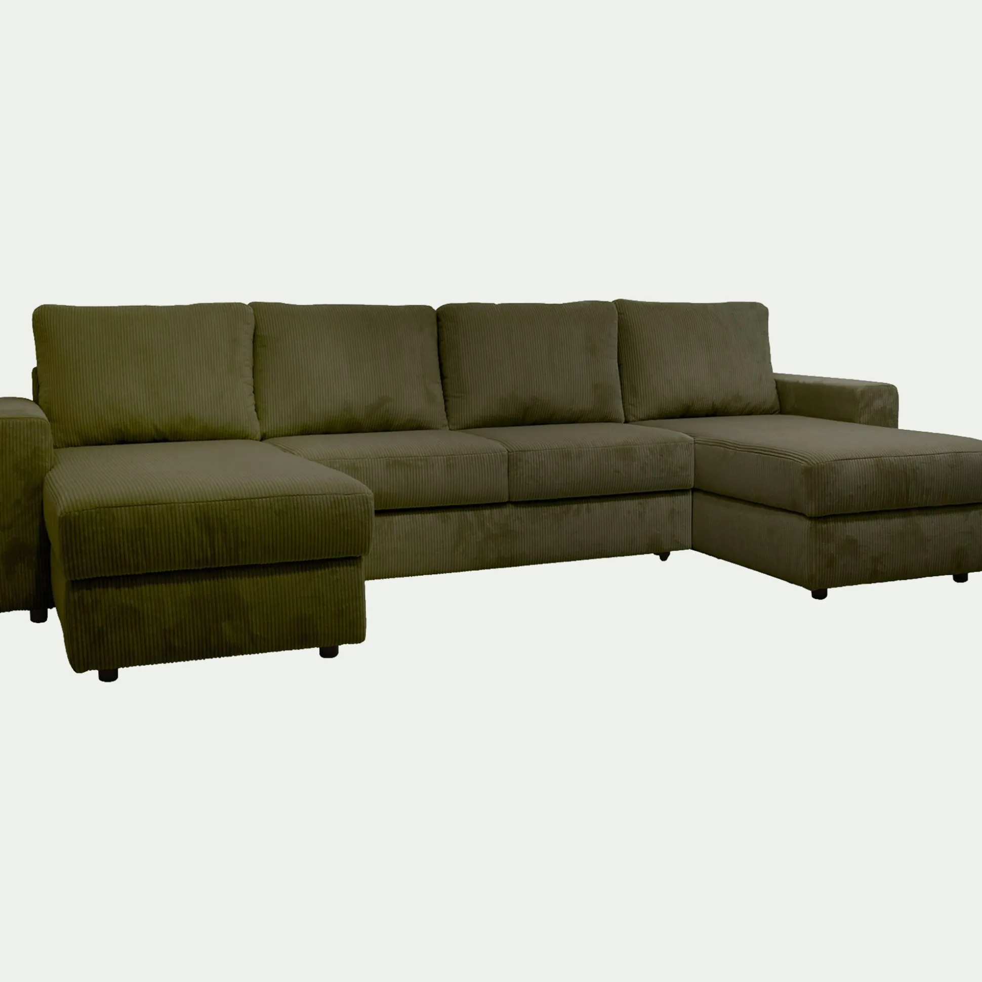 - Canapé d’angle réversible convertible en velours côtelé – vert cèdre