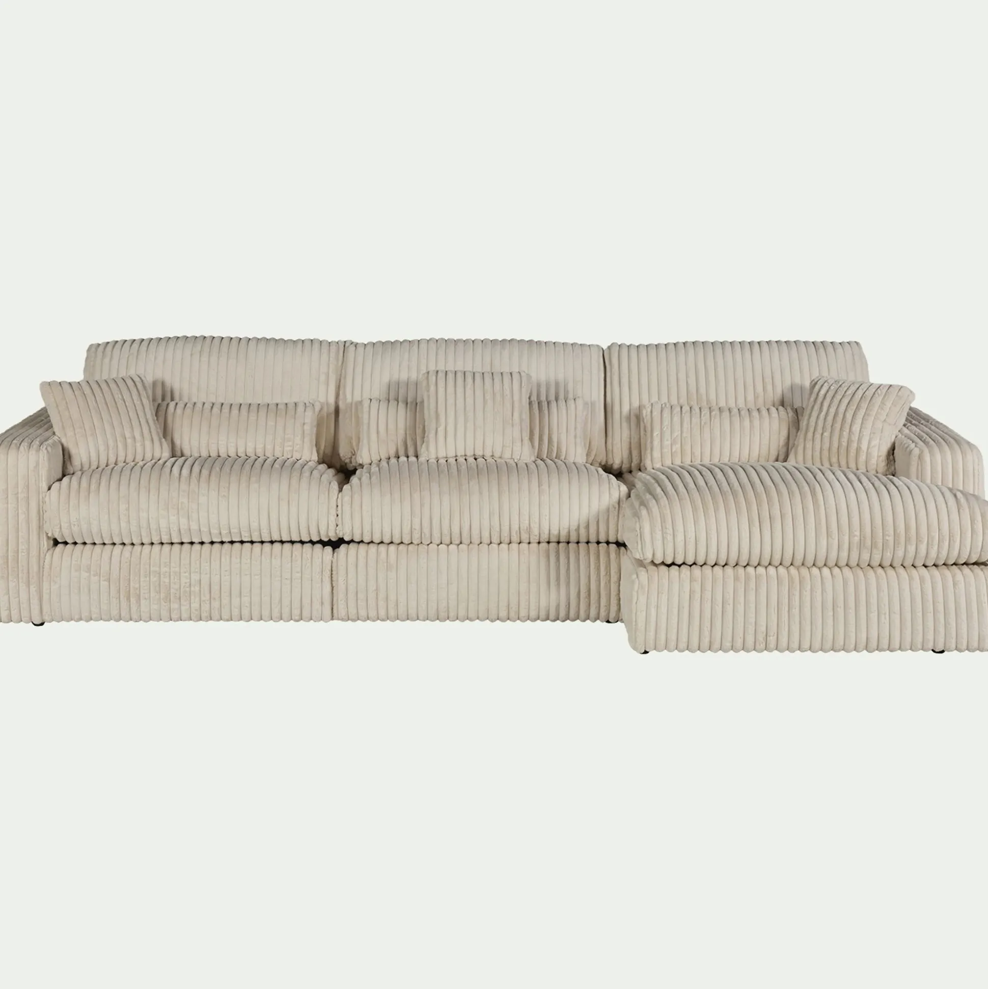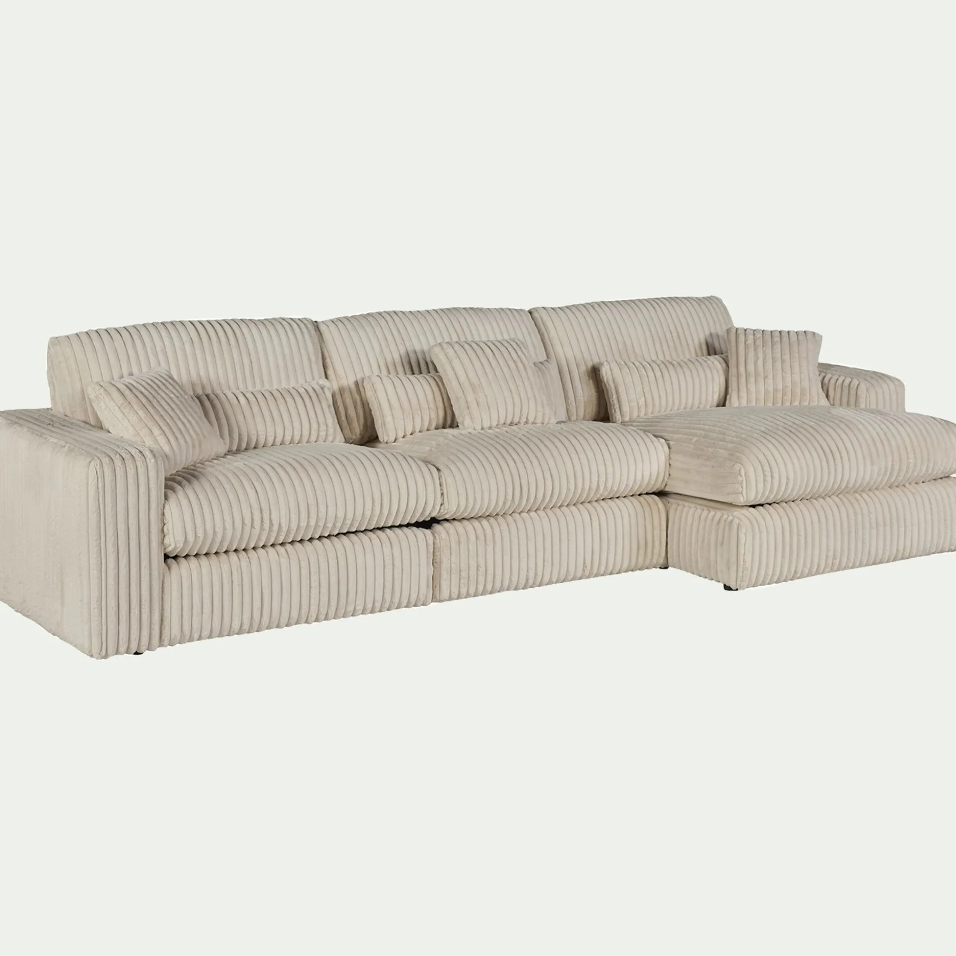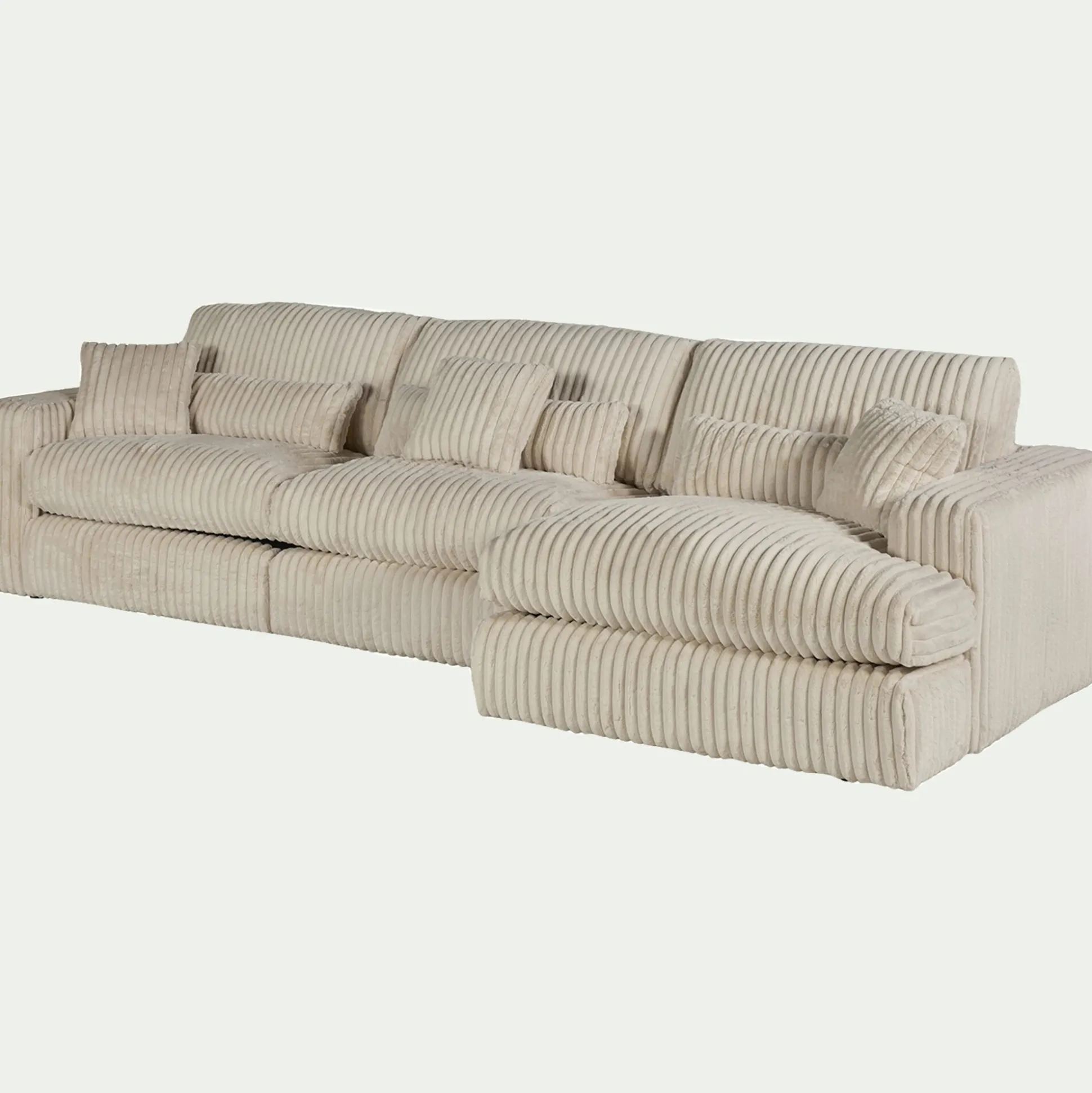 Avec son grand angle à droite, ce canapé d’angle est une invitation aux moments partagés. Son revêtement en velours côtelé, à la fois doux et résistant, enveloppe l’espace d’une chaleur réconfortante. Son coloris blanc ventoux, intemporel, s’harmonise avec tous les styles d’intérieur. Pensé pour le confort, ce canapé fixe se compose d’une assise spacieuse, d’un dossier accueillant et de coussins déhoussables pour un entretien facilité. Des coussins décoratifs viennent parfaire l’ensemble, ajoutant une touche cosy. Un canapé idéal pour des instants de détente en famille ou entre amis.