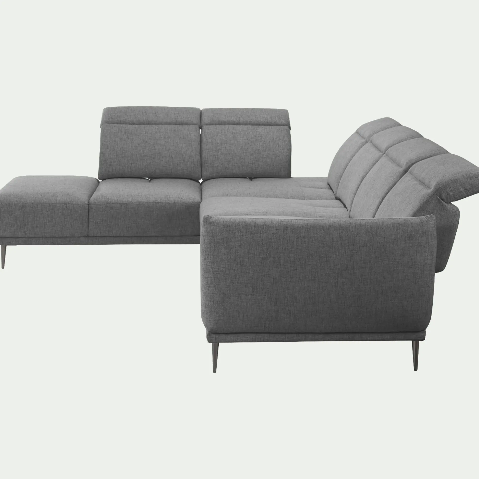Optez pour ce canapé d’angle droit 5 places fabriqué en Roumanie. Il arbore un design sobre et chic, ainsi qu’une couleur intemporelle gris restanque qui s’accordera avec charme à la décoration de votre salon. Du confort, une assise profonde et généreuse, grâce à un système de dossier qui peut reculer, Marko est un beau canapé qui conviendra parfaitement comme pièce maîtresse de votre pièce de vie. De plus, vous pouvez relever les têtières pour pouvoir être bien installé devant la télé ou lire un livre. Un canapé à la fois déco et d’une qualité exceptionnelle, c’est un meuble qui saura vous séduire.