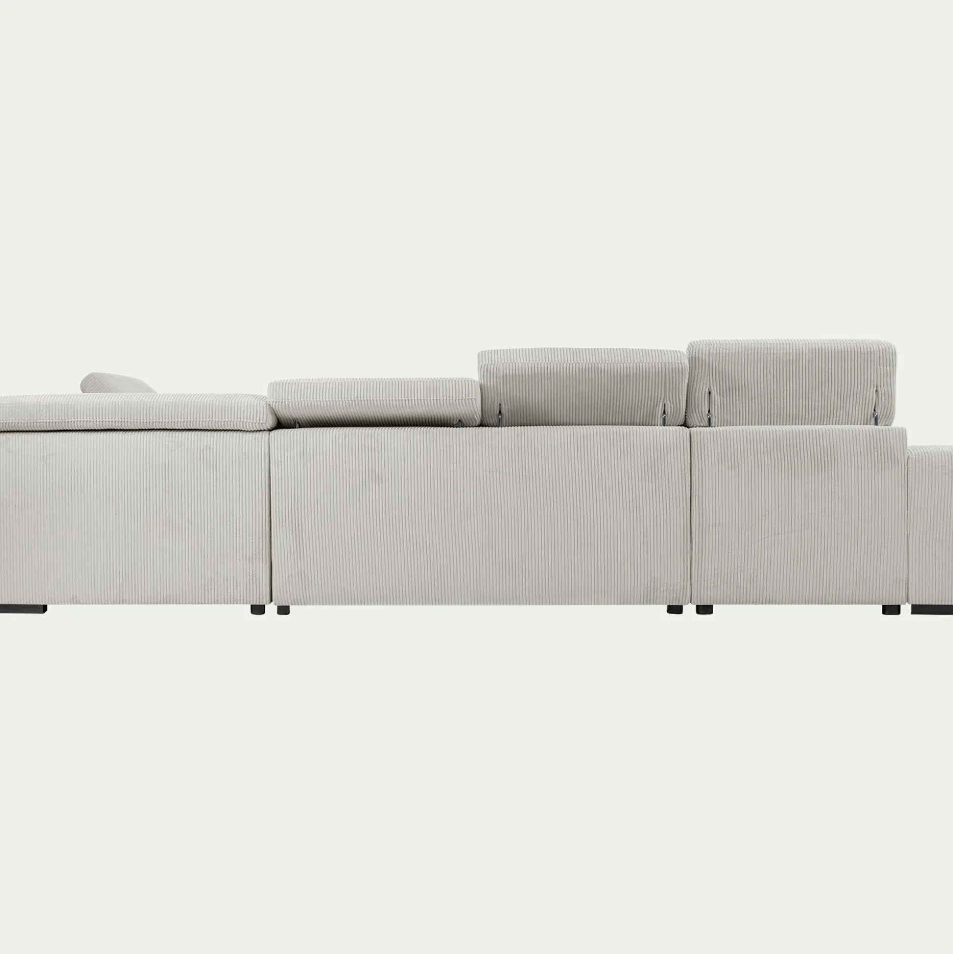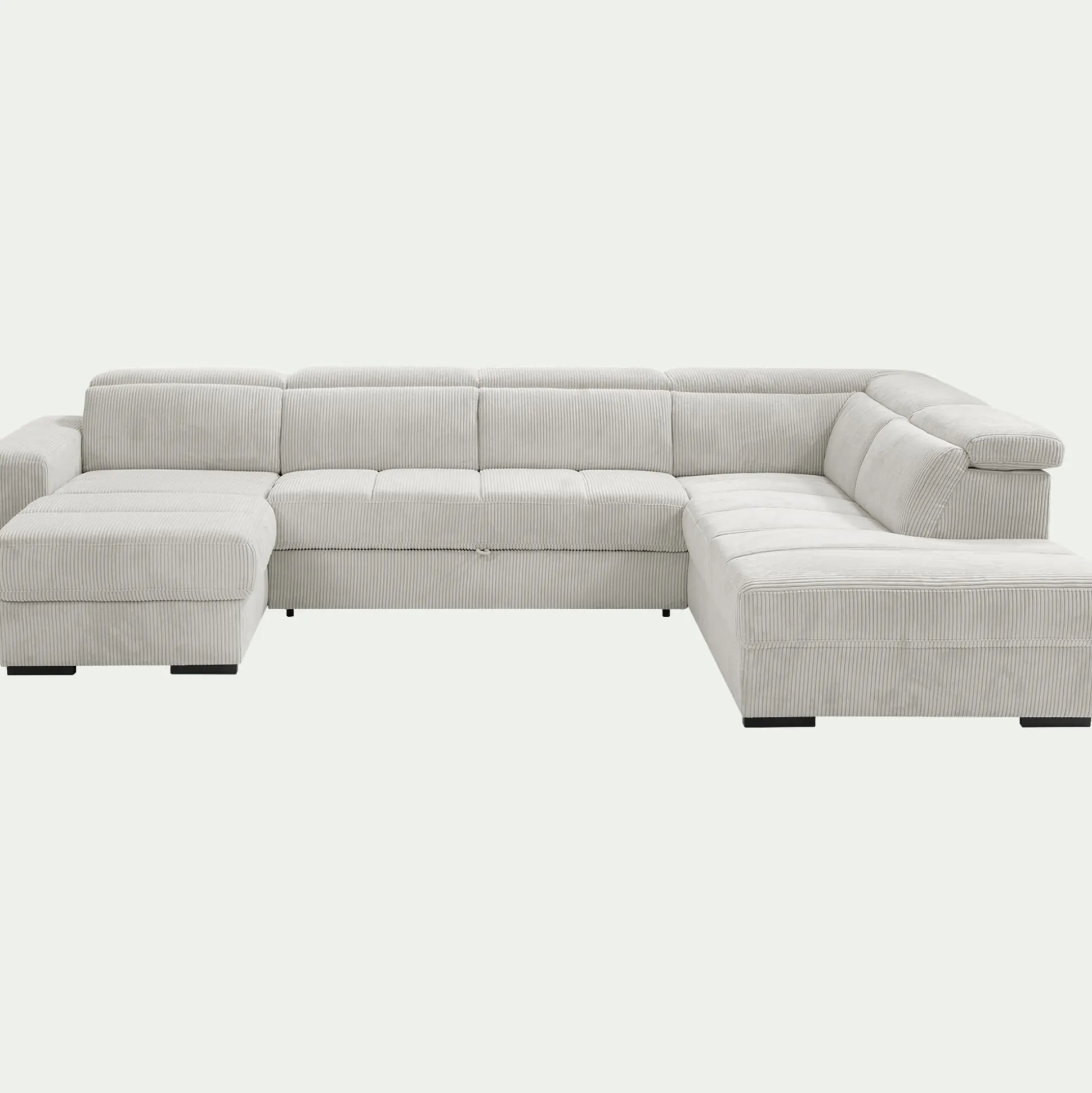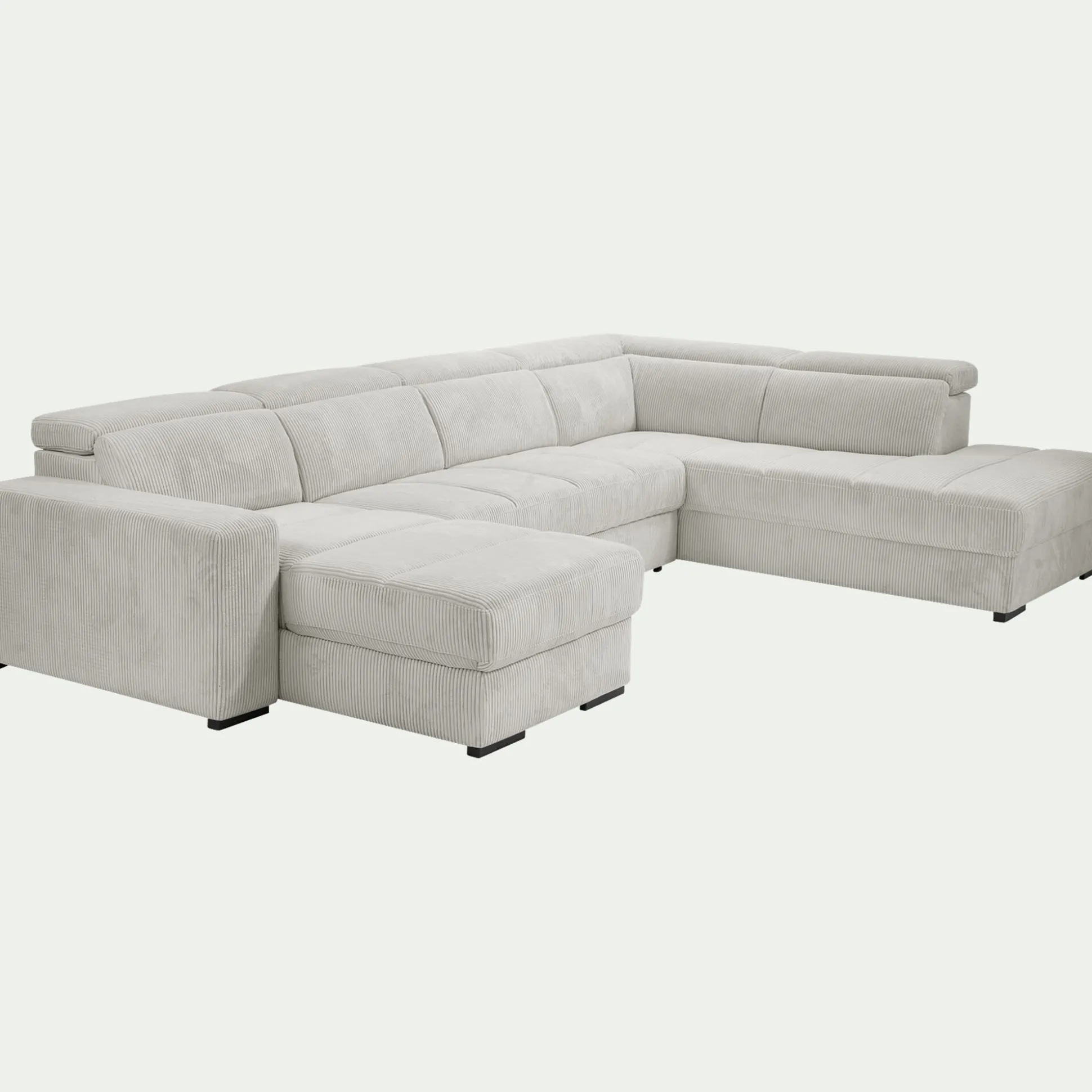 Ce canapé panoramique en tissu côtelé beige roucas est la solution complète pour votre salon. Sa forme en U structure l’espace et offre une capacité d’accueil exceptionnelle. Pensé pour le quotidien, il se transforme facilement en un couchage confortable. Sous sa méridienne se cache un vaste coffre de rangement, idéal pour optimiser votre pièce de vie. Son tissu à grosses côtes, à la fois tendance et résistant, en fait une pièce aussi esthétique que maline. Un véritable canapé 3-en-1, parfait pour les grandes familles et les intérieurs vivants.