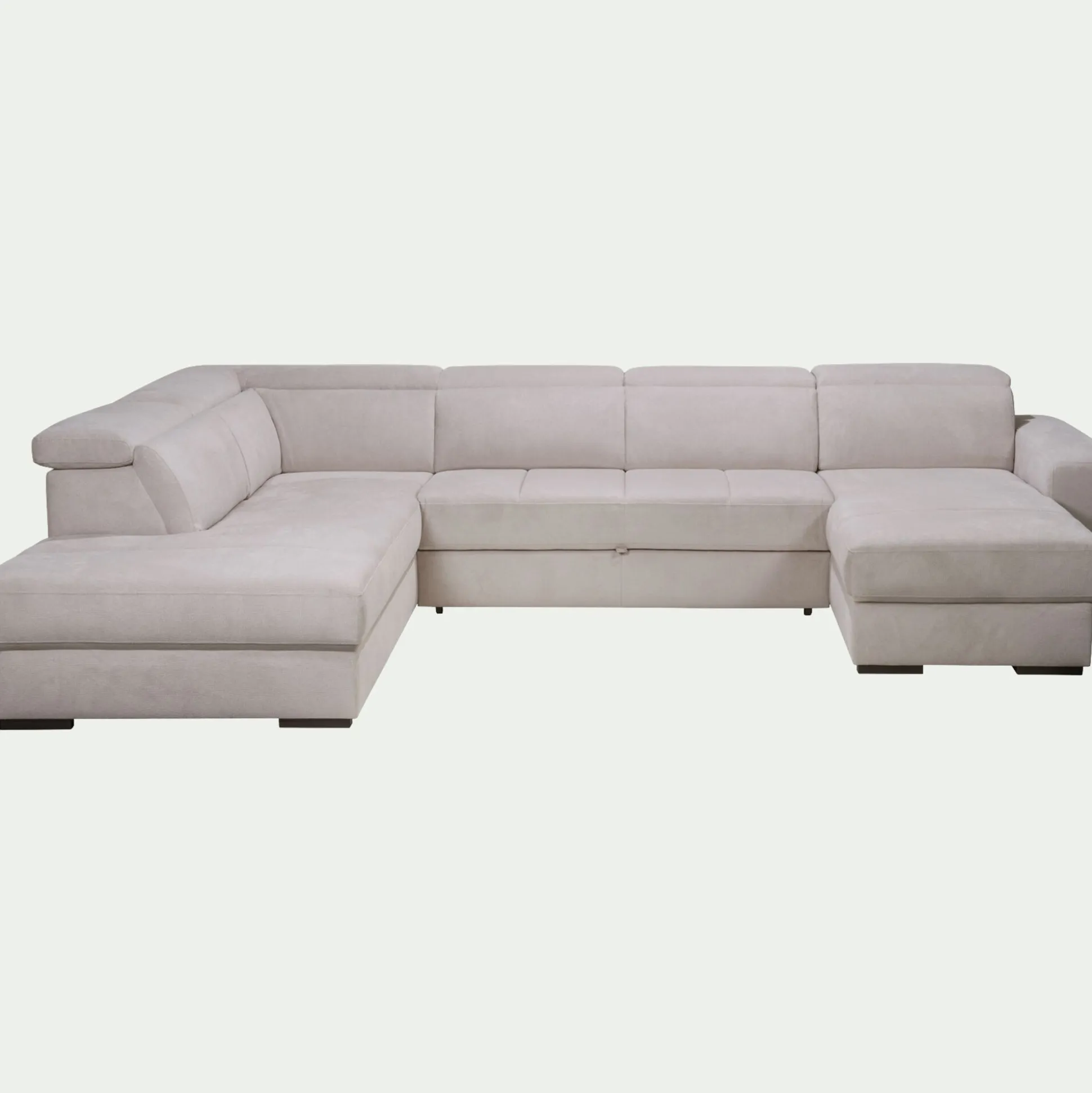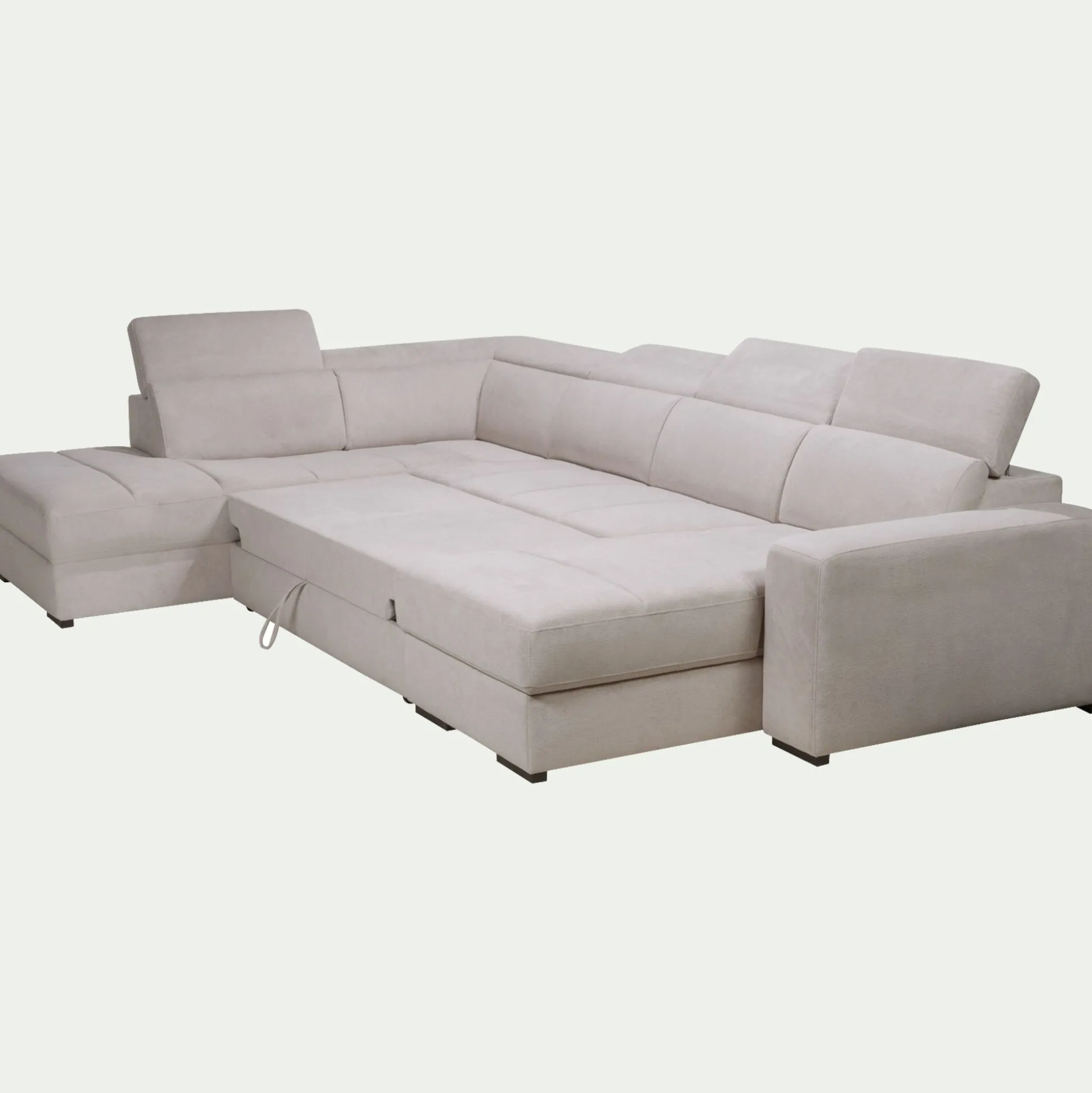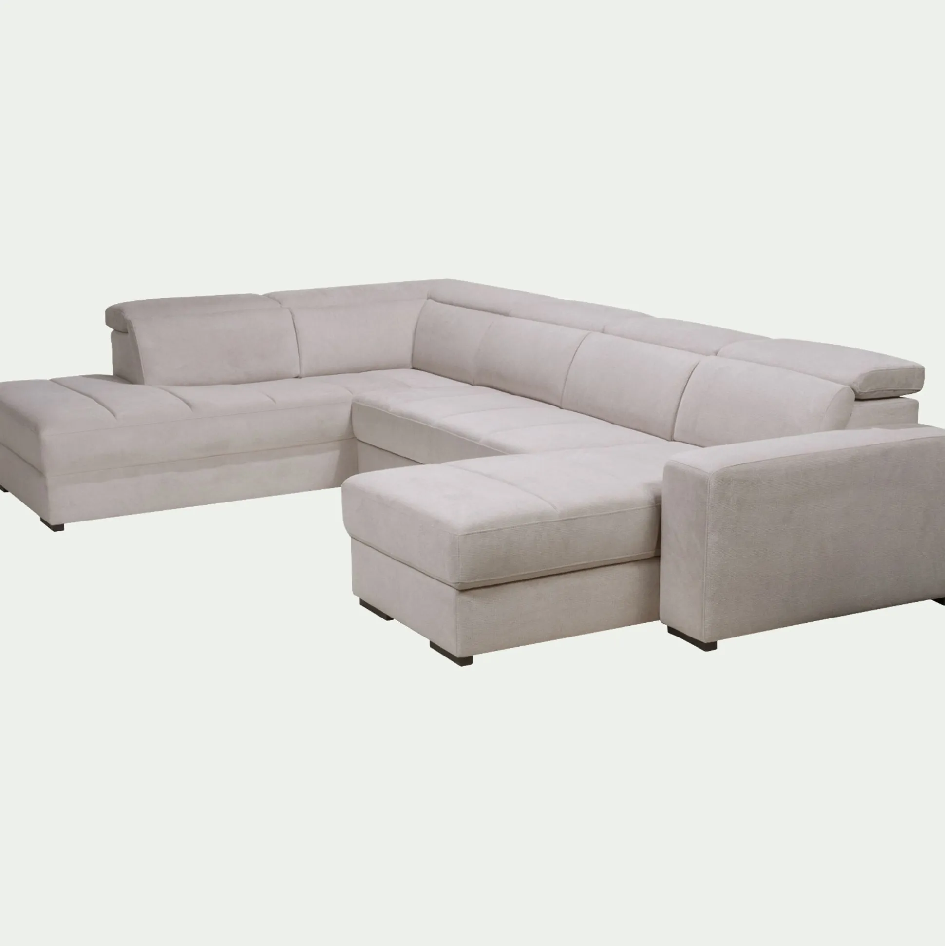 Canapé panoramique convertible avec méridienne droite en tissu doux – beige