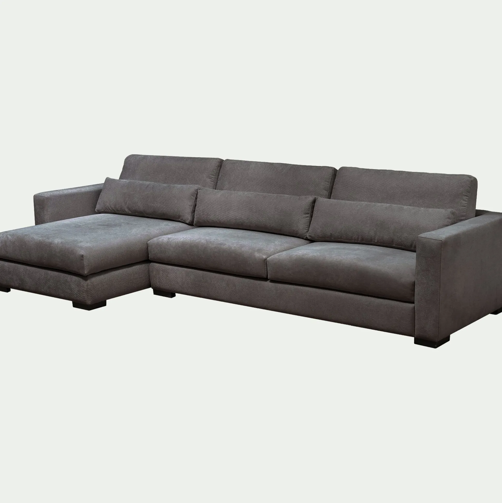 Alliant raffinement et convivialité, ce canapé d’angle avec angle à gauche séduit par son allure intemporelle et son revêtement en tissu gris anthracite. Chic et sobre, cette teinte apporte une touche feutrée à l’espace, sublimant le salon avec élégance. Son assise généreuse et profonde invite à la détente, que ce soit pour se reposer après une longue journée ou partager un moment entre proches. La petite chaise longue à gauche permet d’étendre les jambes, offrant un confort optimal. Conçu pour durer, ce canapé fixe repose sur une structure en pin massif, garantissant stabilité et solidité au fil des années. Pratique au quotidien, ses coussins d’assise et de dossier sont entièrement déhoussables, facilitant leur entretien.