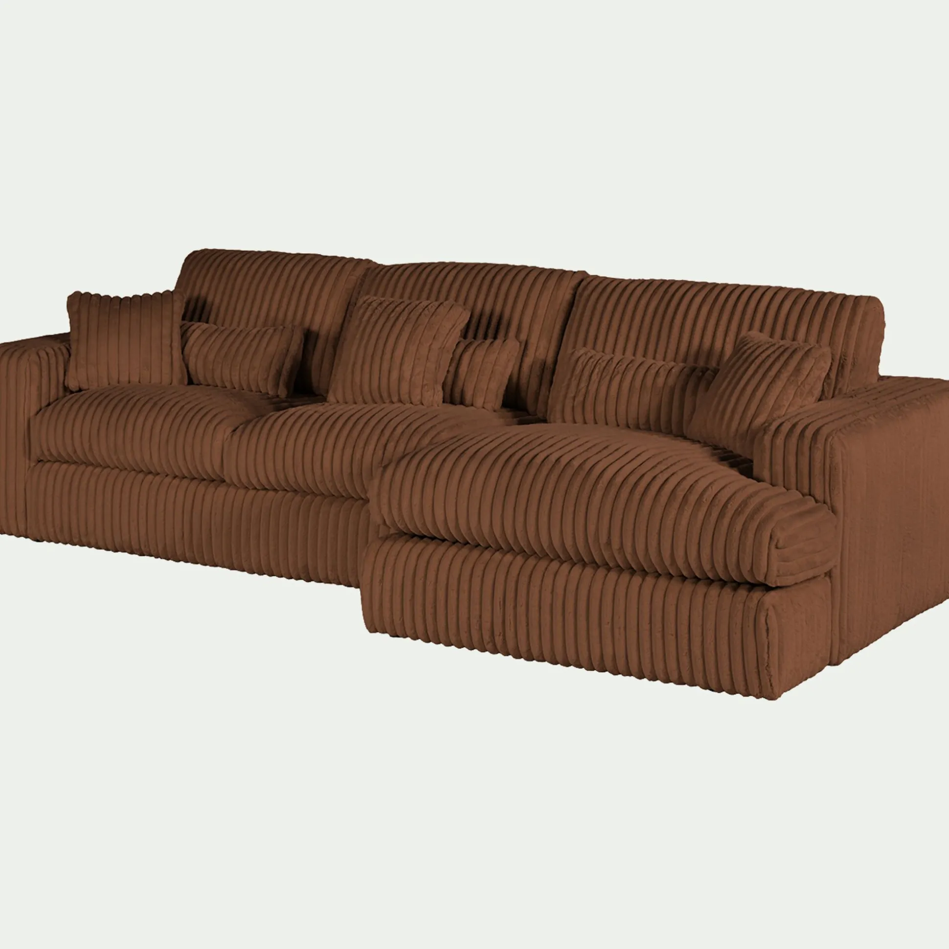 Canapé petit angle droit fixe en tissu côtelé bita – brun rustrel