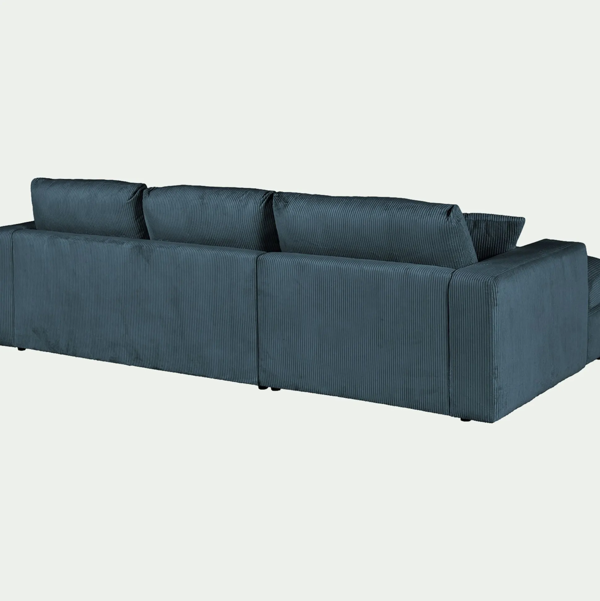 Avec son format 3 places et son angle à droite, ce canapé d’angle est une invitation aux moments partagés. Son revêtement en velours côtelé, à la fois doux et résistant, enveloppe l’espace d’une chaleur réconfortante. Son coloris bleu, intemporel, s’harmonise avec tous les styles d’intérieur. Pensé pour le confort, ce canapé fixe se compose d’une assise spacieuse, d’un dossier accueillant et de coussins déhoussables pour un entretien facilité. Six coussins décoratifs viennent parfaire l’ensemble, ajoutant une touche cosy. Un canapé idéal pour des instants de détente en famille ou entre amis.