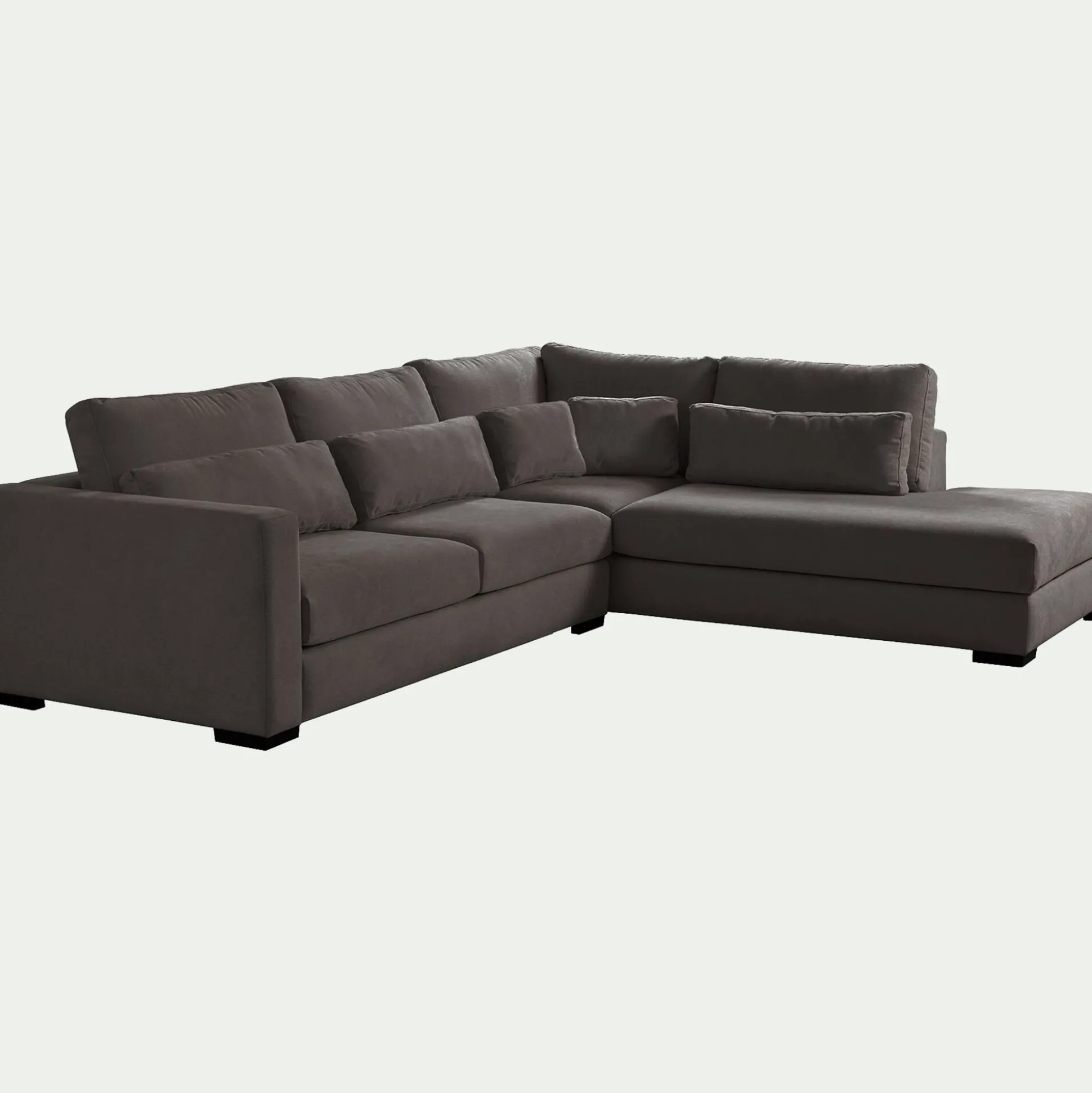Ce canapé d’angle présente une méridienne à droite : un petit angle parfait pour créer un coin cocooning. Grand, ce canapé permet d’accueillir plusieurs convives ou de s’étendre après une longue journée. Revêtu d’un tissu gris anthracite riche en contraste, ce canapé fixe charme par sa texture douce et son revêtement résistant. Son assise profonde repose sur une structure en bois massif et des ressorts, assurant un confort durable et un soutien équilibré. Conçu pour le quotidien, ses coussins de dossier et d’assise sont entièrement déhoussables, facilitant l’entretien. Imposant et élégant, ce grand canapé gris foncé apporte du caractère à la pièce et devient le compagnon idéal des moments de convivialité et de relaxation.