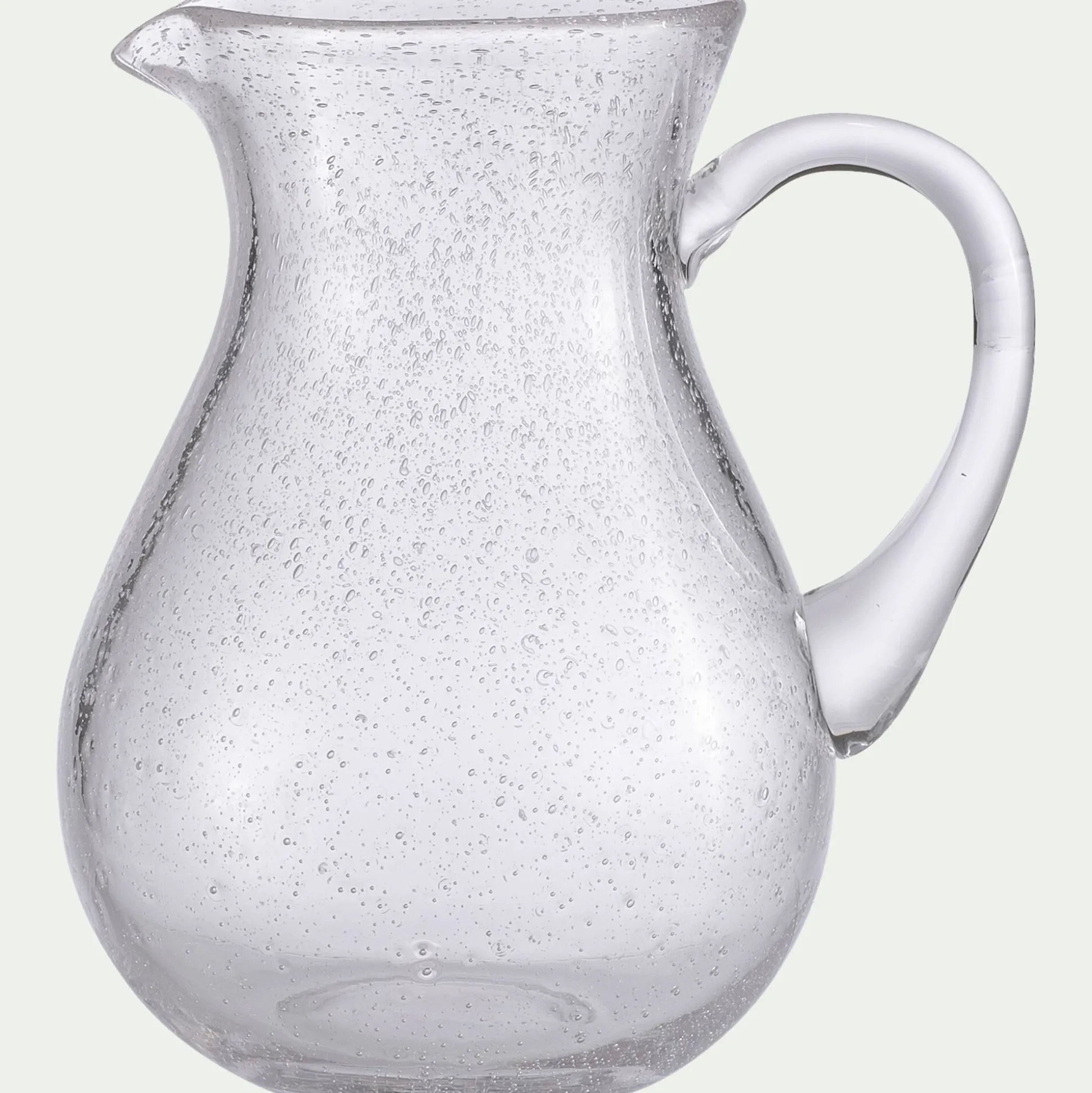 Cette carafe en verre bullé est un véritable bijou pour votre table. Ses petites bulles délicatement piégées dans le verre créent une profondeur fascinante, ajoutant une touche d’authenticité et de charme à chaque utilisation. Dans un style traditionnel, elle est dotée d’une anse qui facilite le service de l’eau. Sa transparence permet d’admirer les mouvements de l’eau, ajoutant une note rafraîchissante à votre art de la table. Ce pichet en verre combine esthétique et fonctionnalité, apportant une touche intemporelle aux repas.