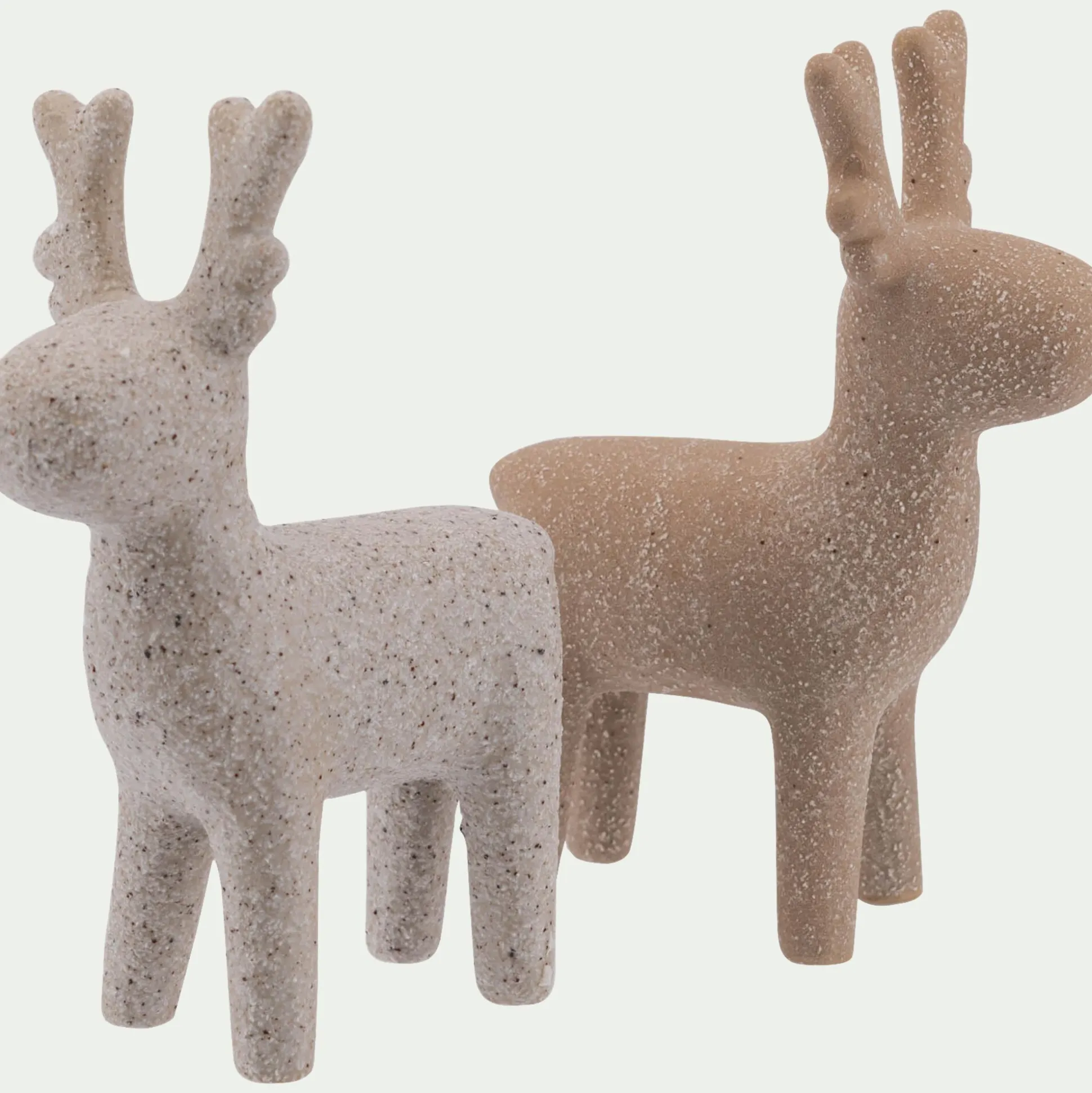 Ce duo de petits cerfs en porcelaine, faisant partie d’un assorti, invite la magie des fêtes à s’installer dans la maison. L’un beige, l’autre marron, ces deux compagnons au design épuré évoquent avec tendresse les forêts hivernales. À poser sur une commode, une étagère ou en centre de table, ils trottent avec délicatesse dans la déco, prêts à créer une ambiance féerique. Associés à quelques sapins décoratifs, ils composent un charmant paysage enneigé, parfait pour un Noël tout en douceur.