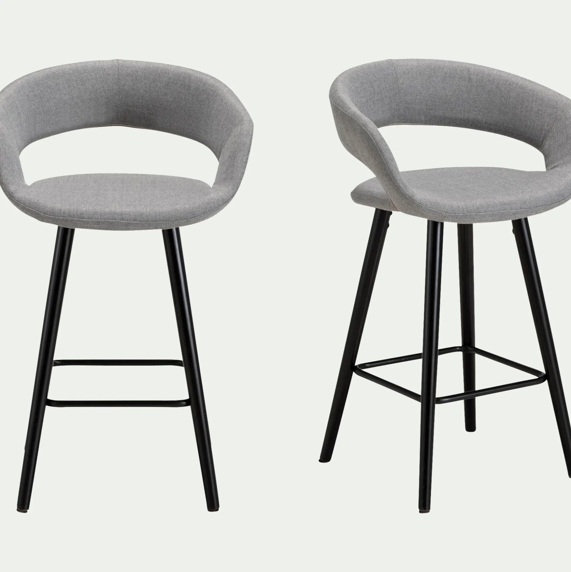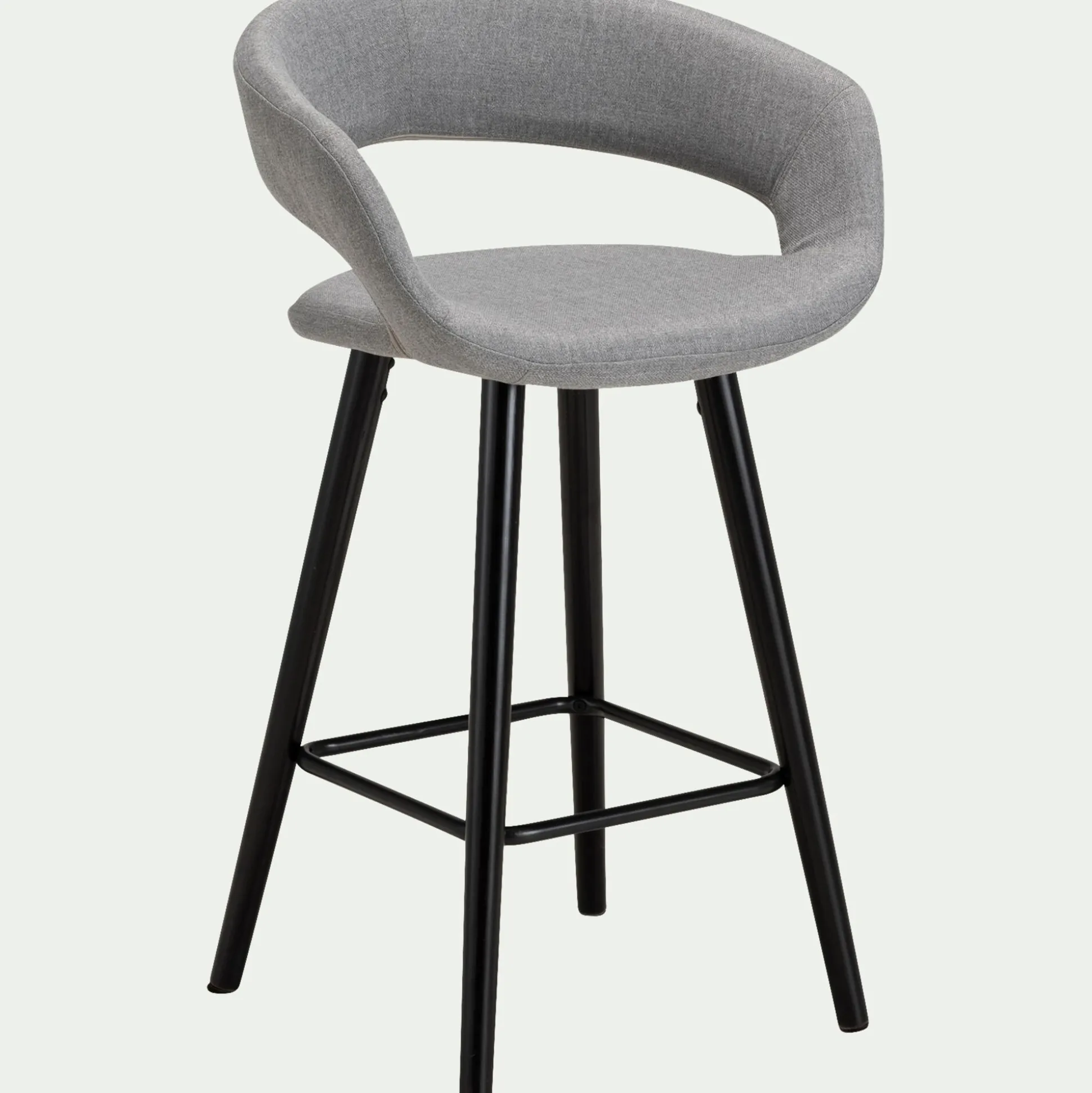 Le tabouret haut Joyau offre un style moderne et indémodable qui donne une élégance incomparable. Son confort est prouvé par son assise en mousse de 26kg/m3 et d’harmonieux accoudoirs. Son piétement en chêne massif noir mat et son doux tissu gris en font un partenaire idéal pour vos moments de convivialité autour du bar. Vous trouverez dans la même gamme les chaises assorties.