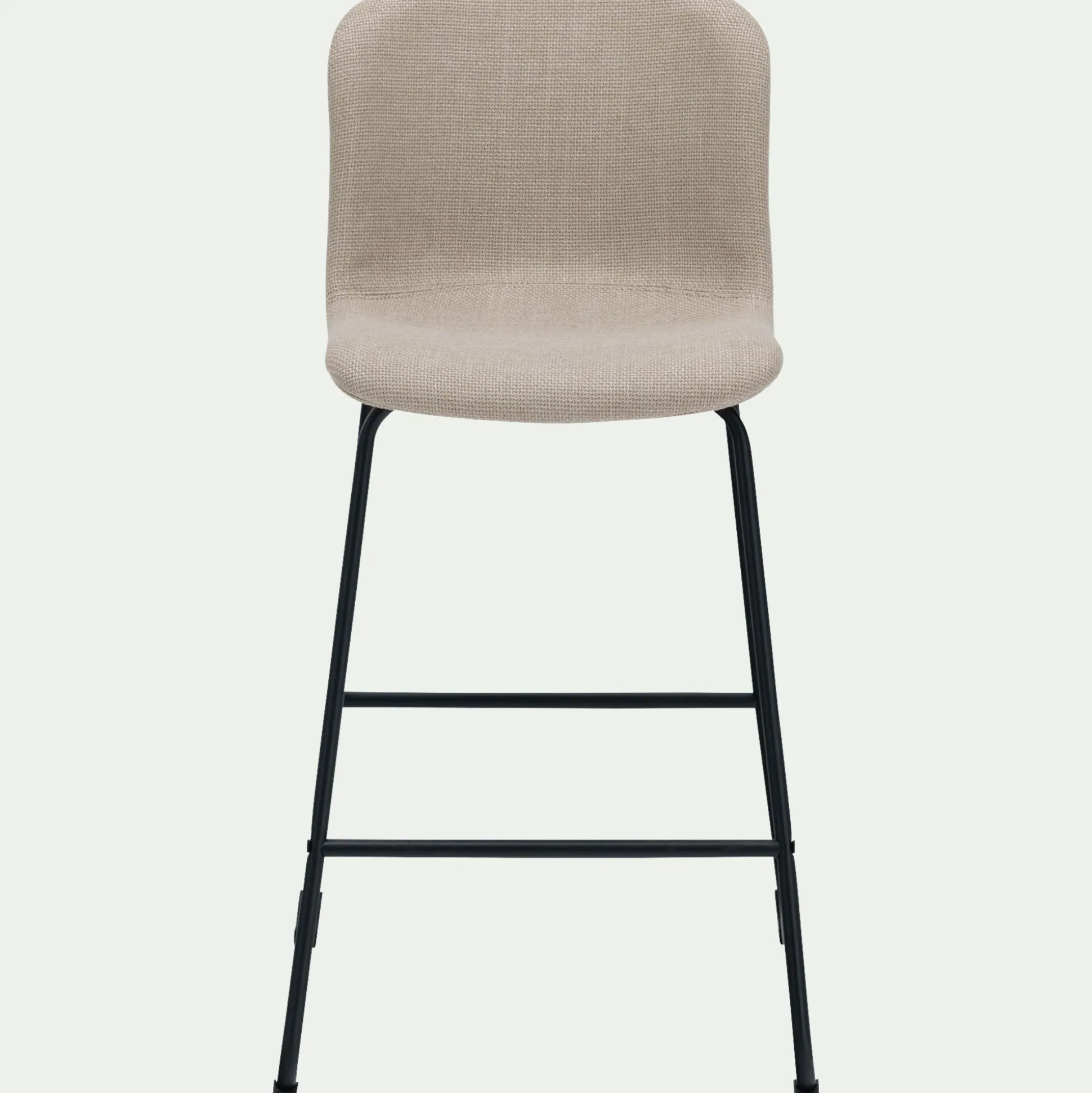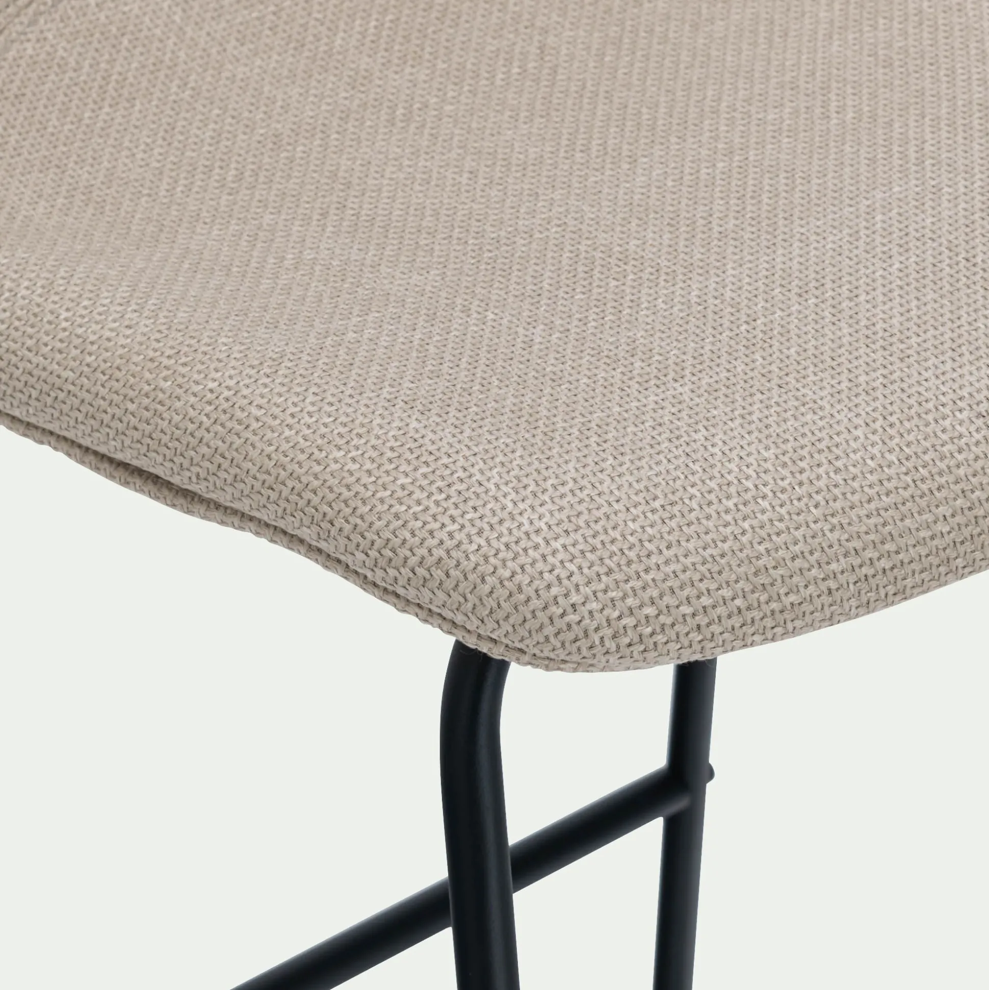 Idéale pour accompagner un comptoir de cuisine ou une table haute, cette chaise de bar affiche une hauteur d’assise de 66 cm, parfaite pour les moments conviviaux autour d’un îlot ou d’un bar. Son piètement en métal noir, à la fois fin et robuste, est équipé d’une barre repose-pieds pour un confort optimal. L’assise, généreusement rembourrée en mousse et habillée d’un tissu beige, offre un accueil moelleux et chaleureux. Avec ses lignes épurées et son allure contemporaine, ce tabouret haut allie fonctionnalité et élégance au quotidien.