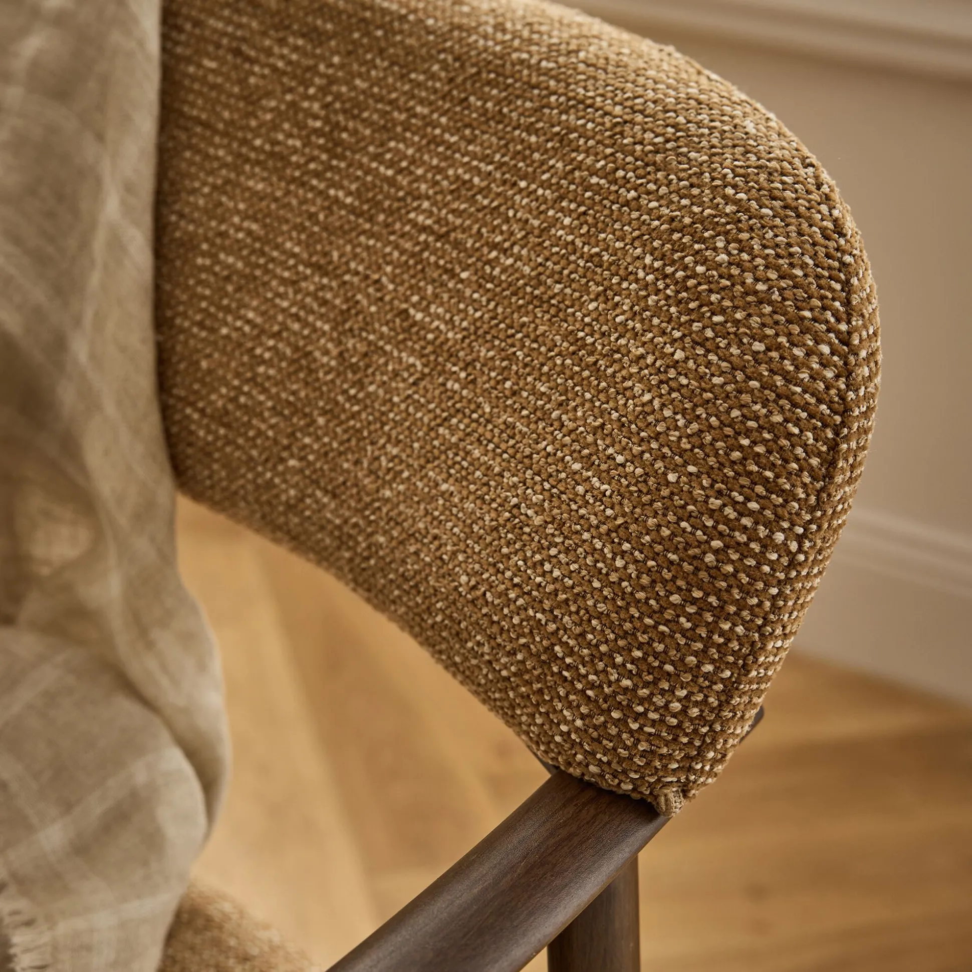 Chaise de repas avec accoudoirs en tissu et acier – brun châtaignier