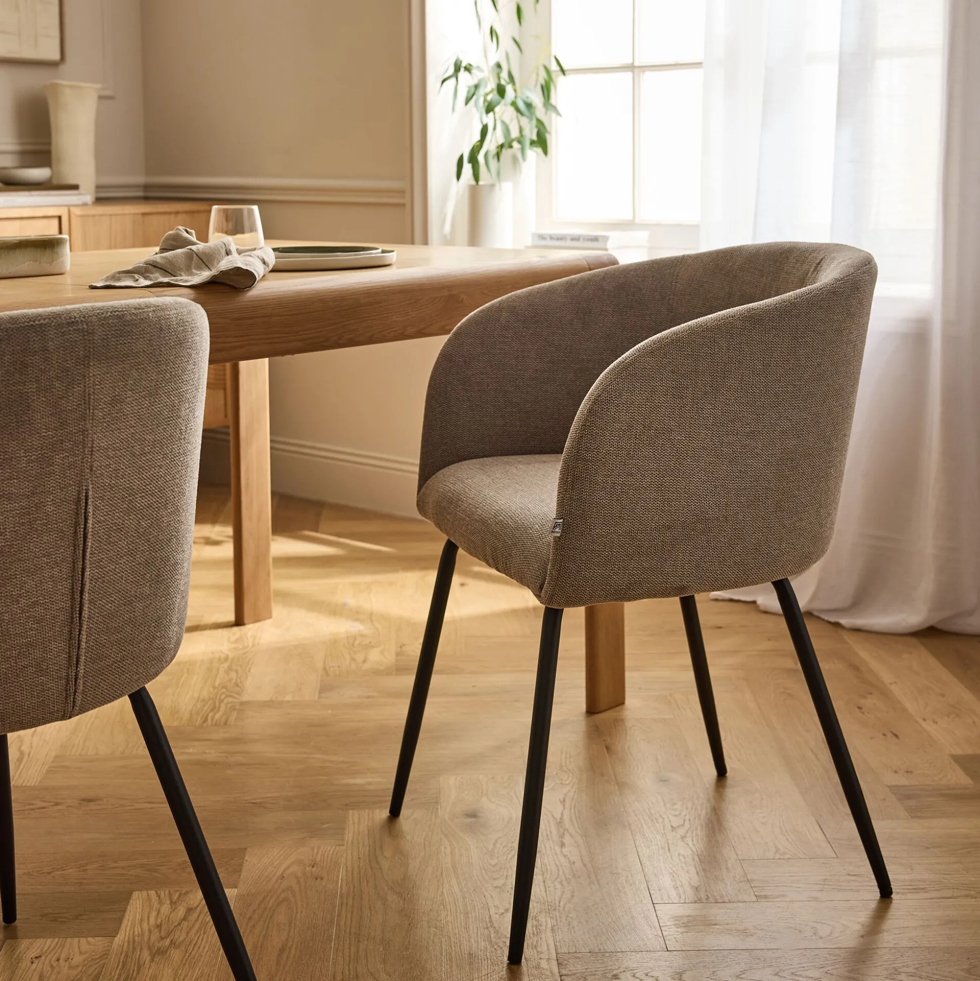 Chaise en tissu et métal avec accoudoirs – beige alpilles