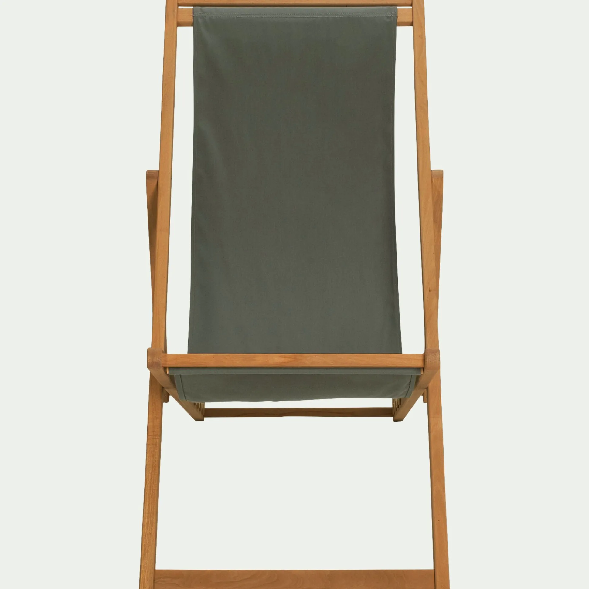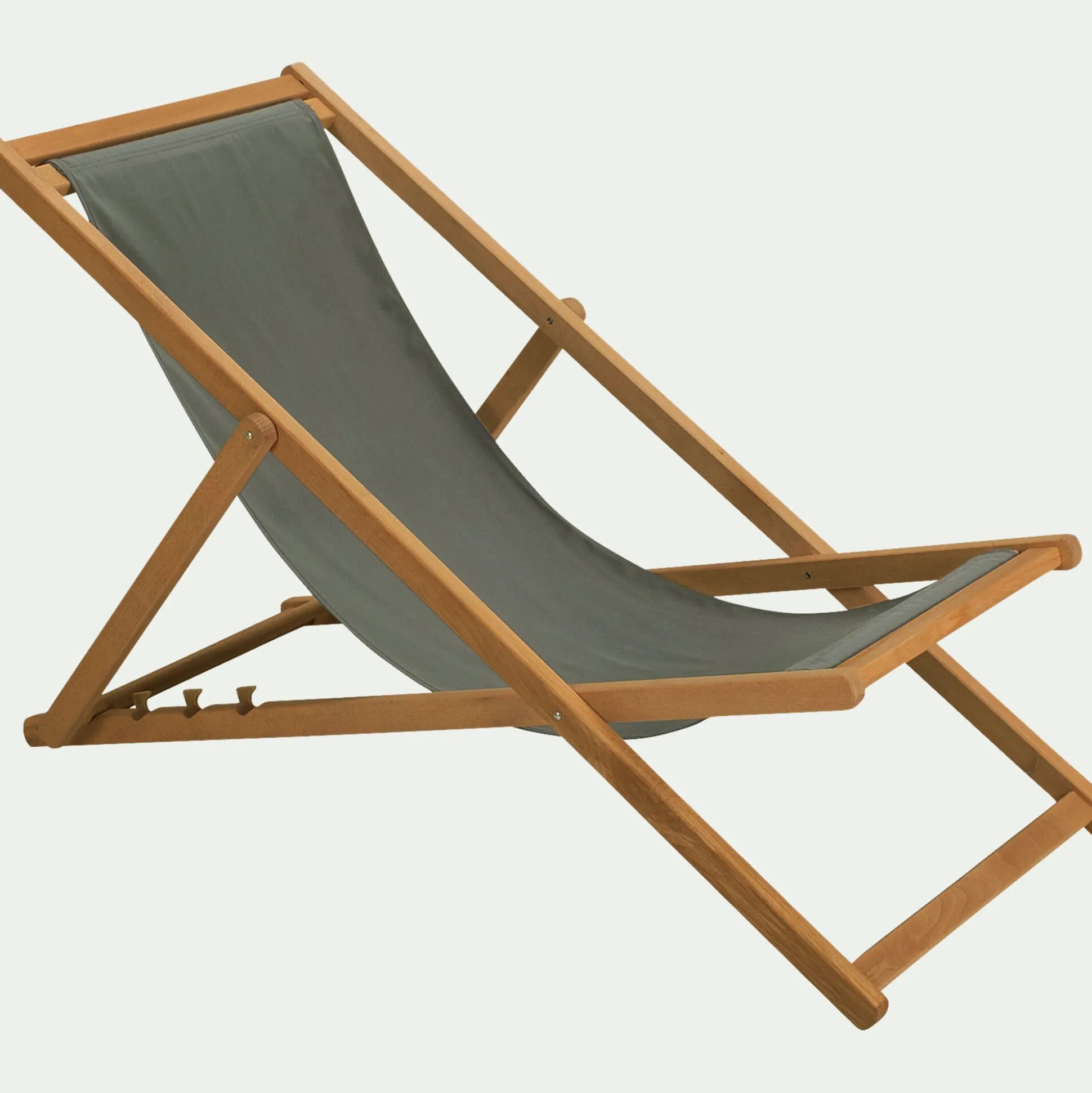 Bois d’hêtre massif certifié FSC avec une finition miel huilée et toile en polyester 230 gr, tissu certifié Oekotex.