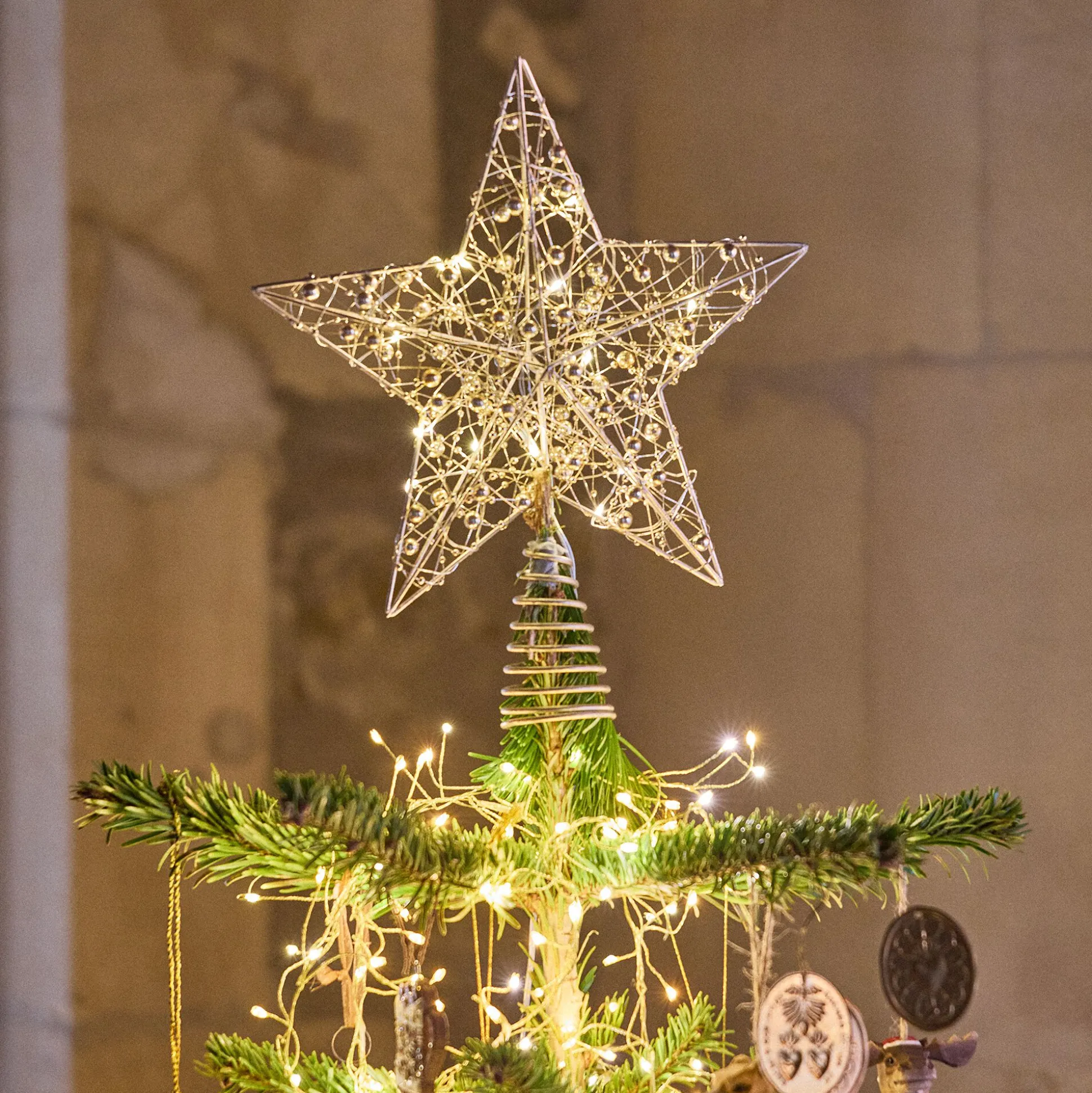 Ce cimier est l’accessoire parfait pour couronner votre sapin de Noël. Lumineux et à la teinte dorée, ce cimier évoque la lumière chaleureuse des fêtes. Habilement travaillé, il prend la forme d’une étoile, symbolisant l’étoile du berger qui éclaire le chemin vers des célébrations joyeuses. Suspendue au sommet de votre arbre, cette étoile lumineuse apporte une touche de magie et de tradition à votre décor.