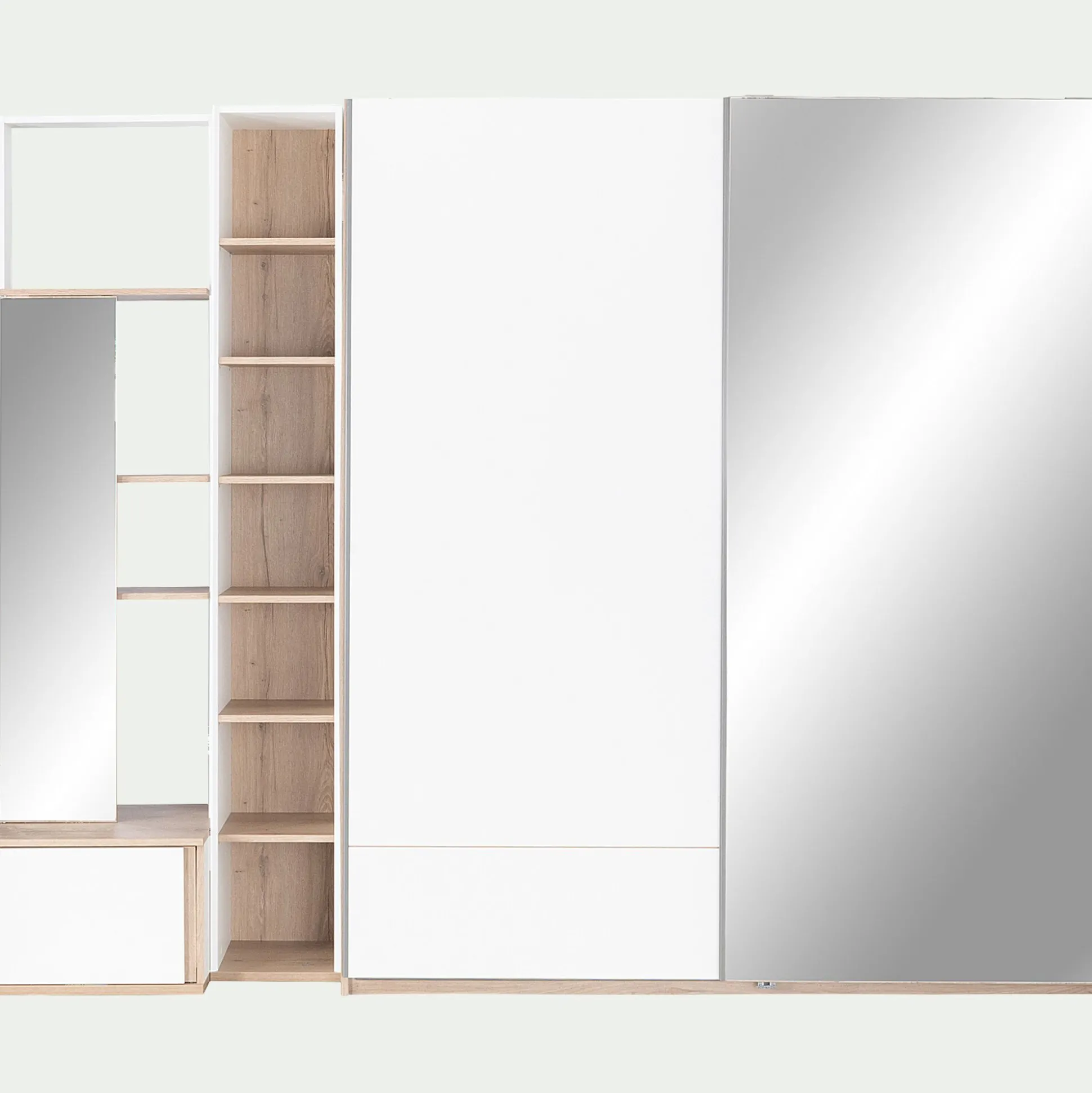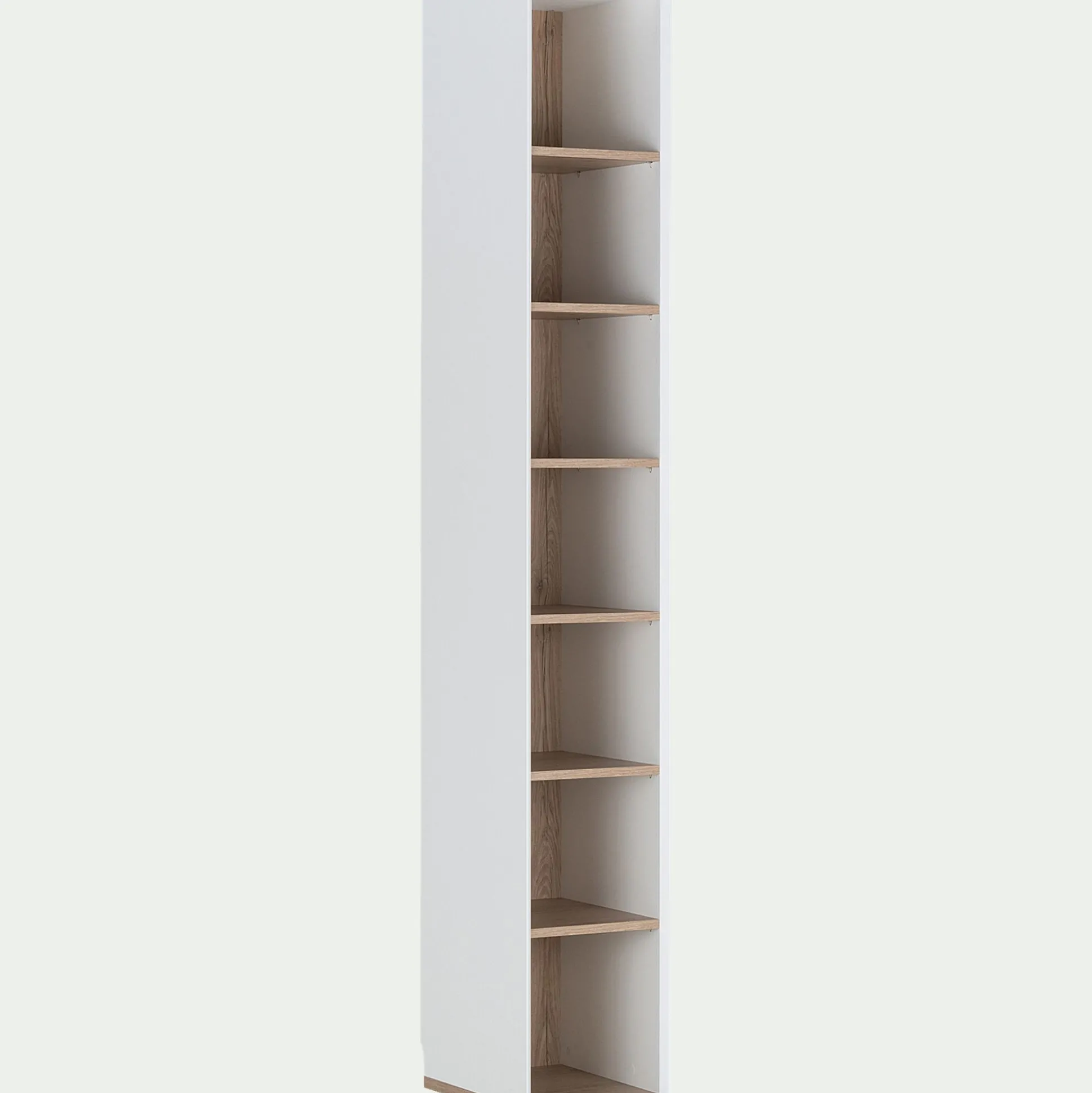 Une bibliothèque blanche où vous pouvez exposer vos affaires et décorations. Vous pouvez utiliser cette pièce seule ou l’associer à un des éléments de la gamme. Chaque module est indépendant et parfaitement complémentaire avec les autres élèments de la gamme. Avec une finition en mélanine et une impression effet bois au toucher, le style et la qualité sont au rendez vous. Résistants, ces meubles durent dans le temps. Le montage de ces derniers est aisé et se fait verticalement. Les coins des modules sont découpés afin de laisser passer les plinthes pour que vous puissiez placer vos meubles contre le mur.