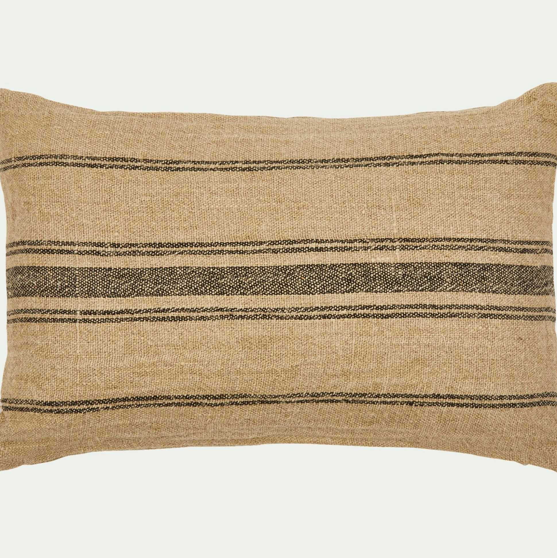 Le coussin Oasis est un coussin en lin qui met à l’honneur le côté naturel. Sa couleur, non teintée, met en valeur cette fibre naturelle. Quelques rayures irrégulières donnent un style oriental à ce coussin qui porte si bien son nom. Oasis de nature au coeur de la maison, ce coussin se marie avec tous les types de décoration.