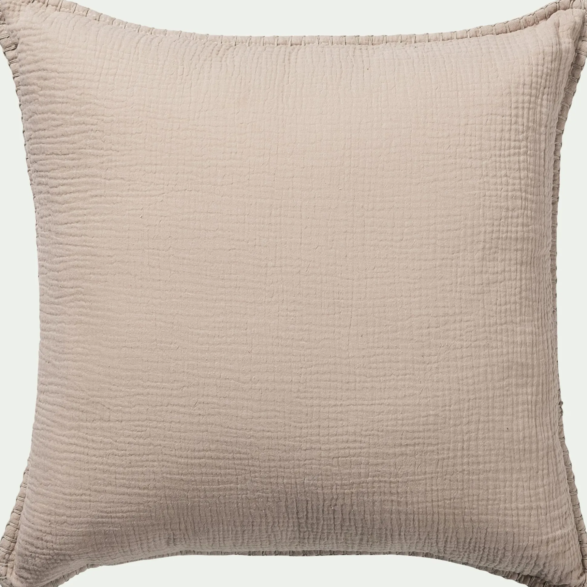 Le coussin est un accessoire décoratif qui participe à une atmopshère cocooning. Le coussin Tessaly est tissé en double gaze de coton : un procédé exigeant qui offre une étoffe vaporeuse à l’effet froissé. Ce coussin en coton arbore notre coloris beige alpilles, inspiré des paysages méditerranéens. Une nuance apaisante qui vient apporter un point de lumière dans votre décoration. Ce coussin beige présente une finition en point à cheval : une couture épaisse qui s’affiche en guise de liseré.