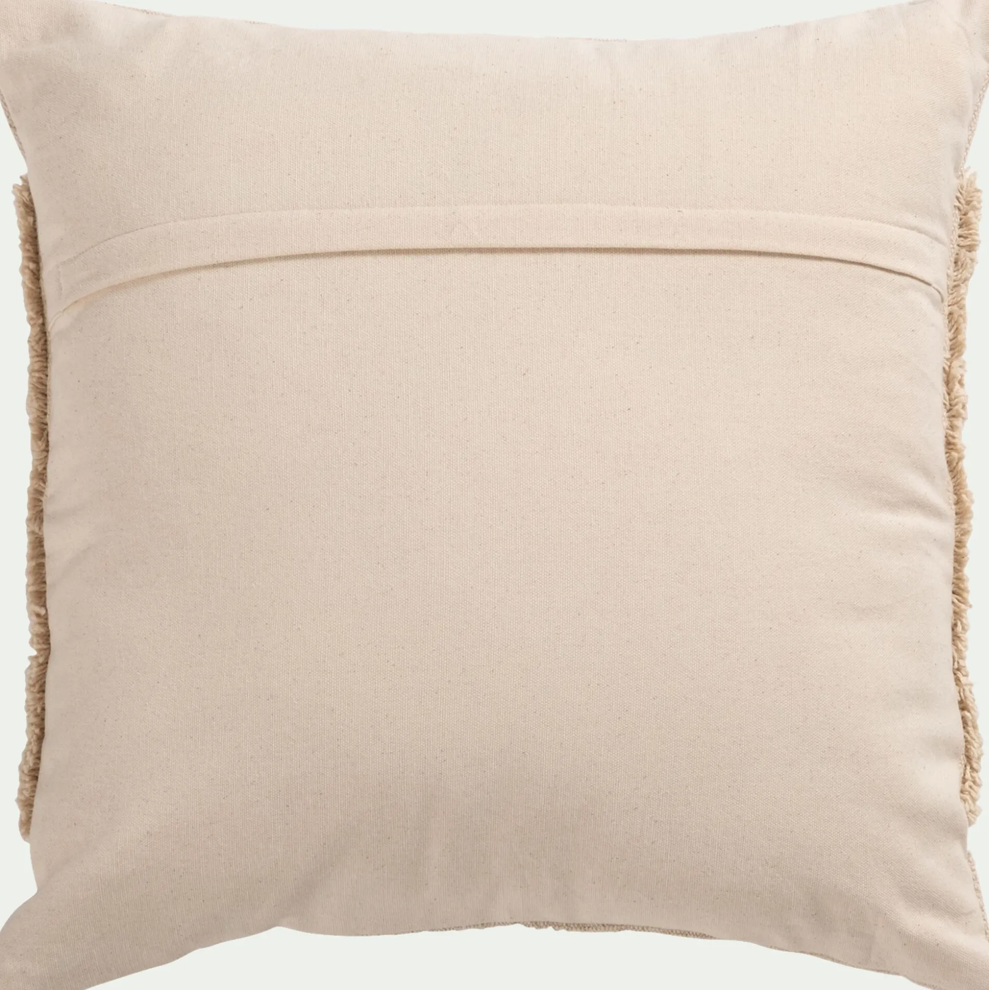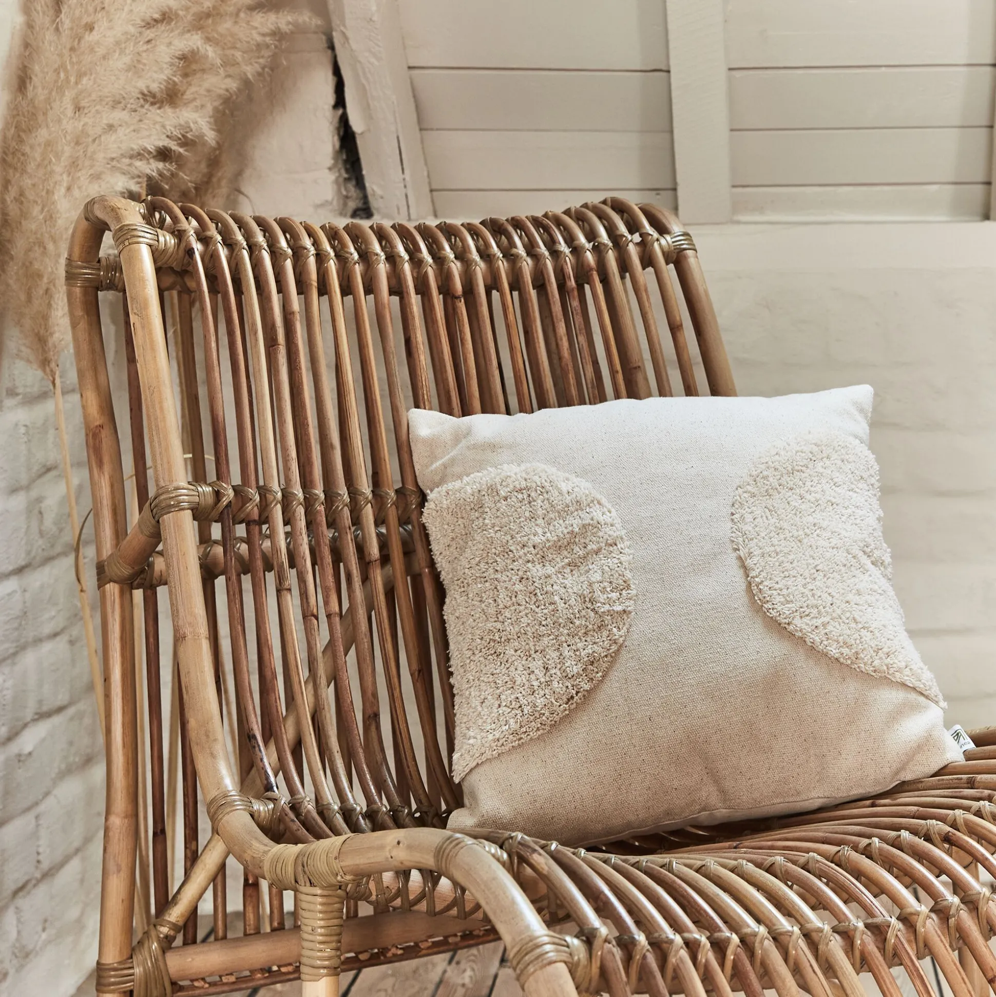 Avec ses demi-lunes laineuses, le coussin d’intérieur Ollia apporte une touche chaleureuse à la décoration. Sur la housse en coton beige, des motifs tuftés ton sur ton. La rondeur des demi-cercles s’allie à la douceur de la texture pour donner vie à ce coussin déco. Ce coussin uni en coton souligne un intérieur monochrome ou apaise une décoration plus colorée. Sur le lit ou sur le canapé, il apporte confort et style.