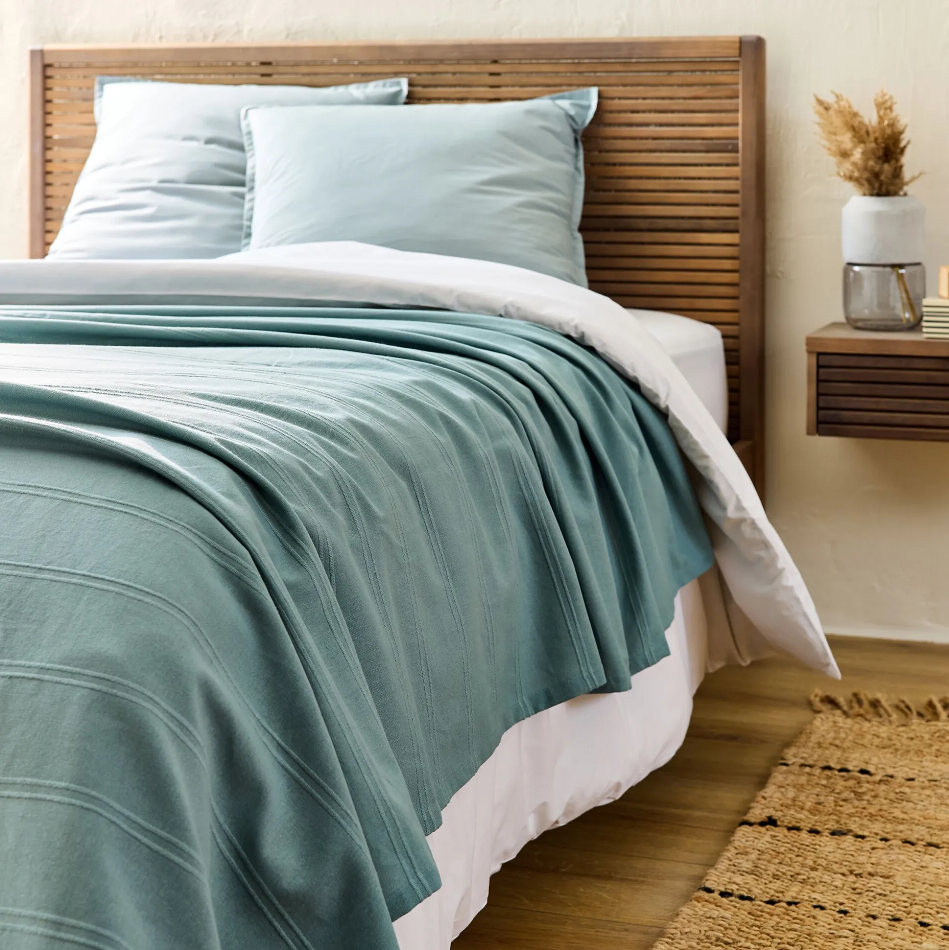 Ce couvre-lit uni arbore un coloris bleu, reconnu en chromathérapie pour favoriser le sommeil. Ainsi, ce plaid bleu trouve parfaitement sa place dans la chambre à coucher. De 180×230 cm, ce couvre-lit convient pour un lit Queen size de 160×200 cm pour un rendu net. Ce couvre-lit en coton est simple, léger, doux et facile d’entretien. Il sublime la chambre en y faisant entrer le ciel et la mer, et réchauffe les nuits les plus fraiches pour un plus grand confort. Un allié de choix pour des nuits paisibles et une chambre agréable à vivre.