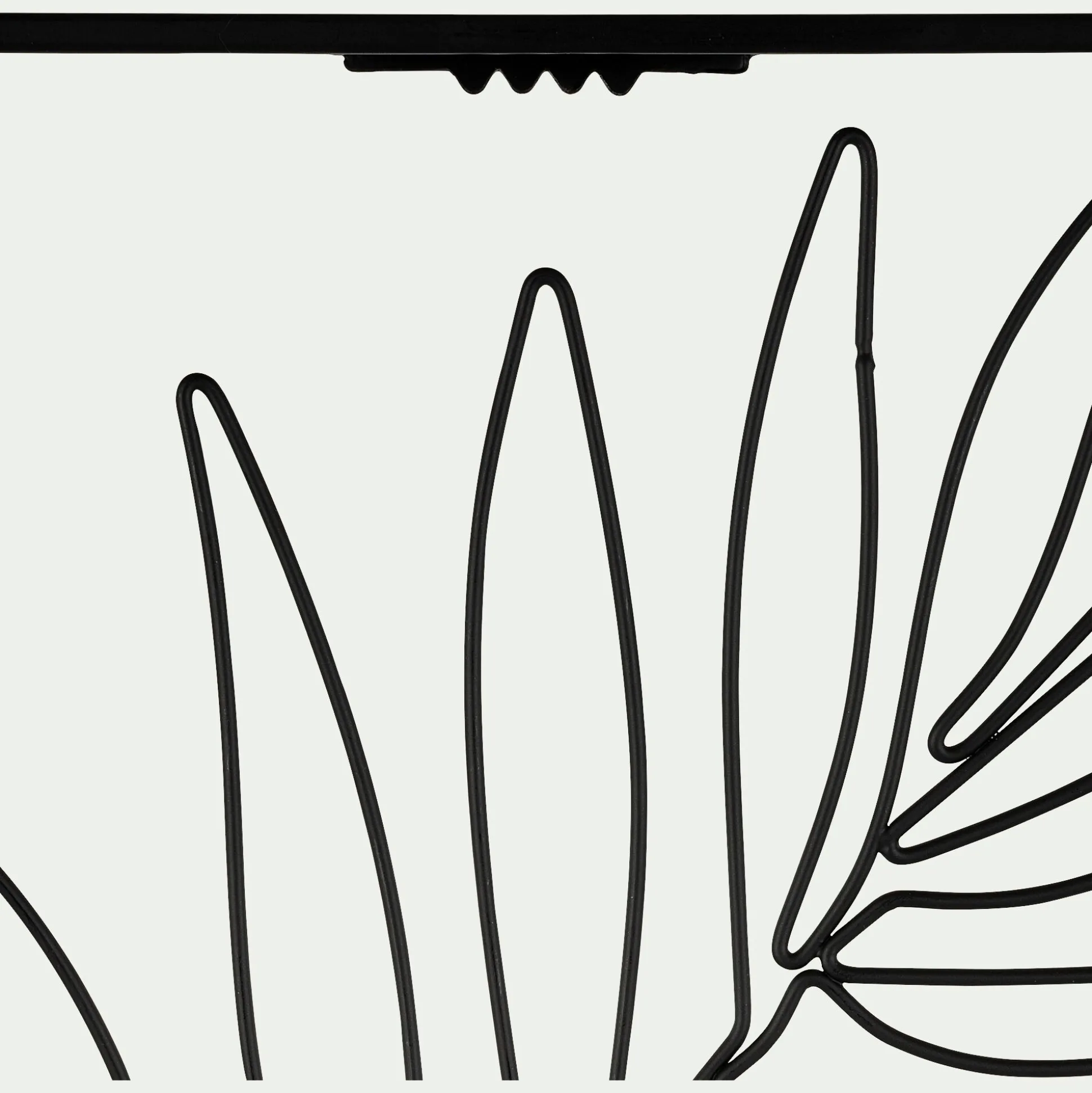 Ce tableau en métal ajouré laisse apparaitre une feuille de palmier. Pennée, cette palme ressemble à une plume : une forme particulière que l’on retrouve sur le cocotier. Sur un mur blanc, cette décoration murale noire se découpera particulièrement bien, par contraste. Adoptez le style à la fois exotique et contemporain chez vous.