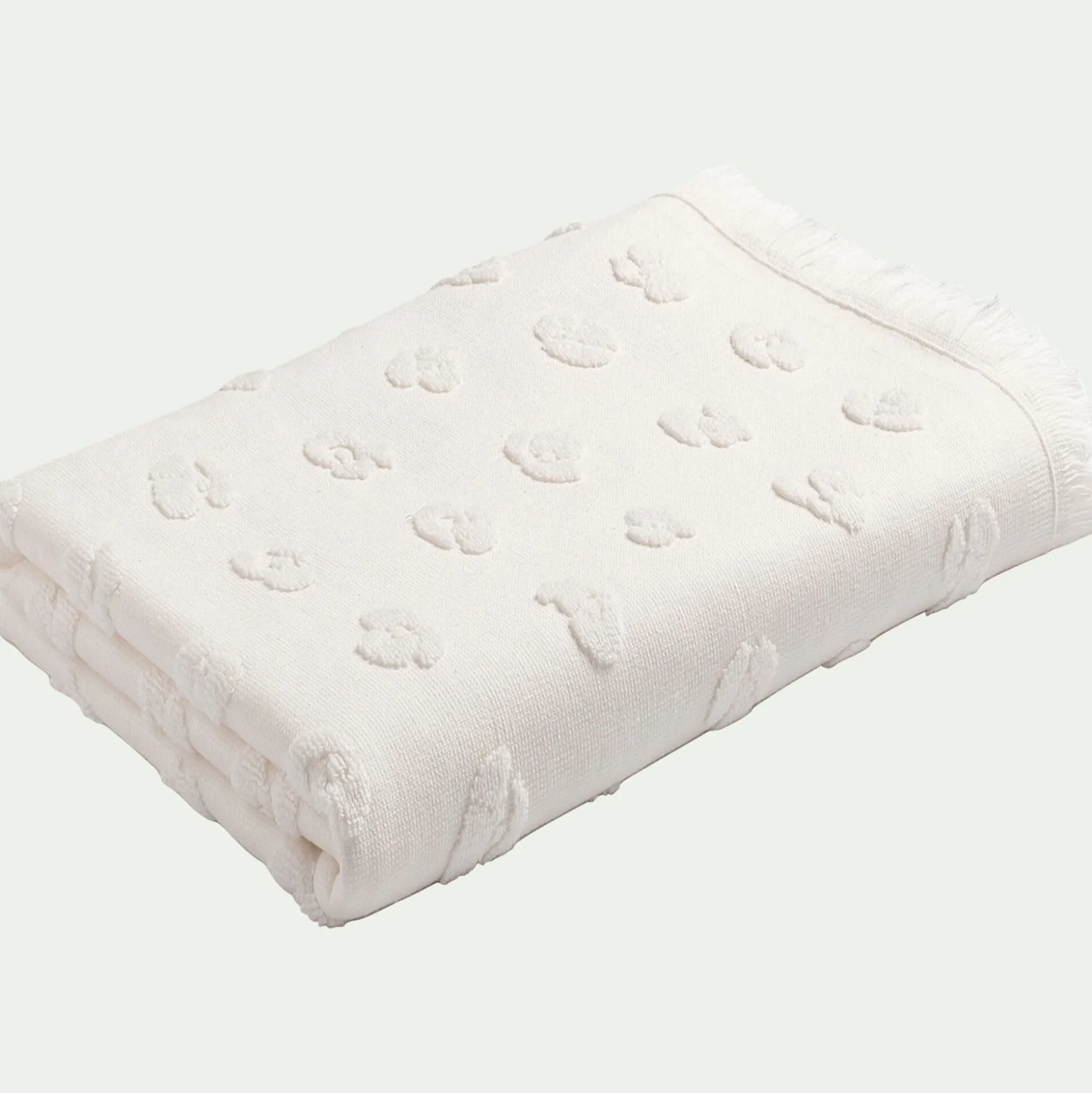 Séchez-vous en toute douceur avec ce drap de douche 70x140cm. Composé à 100 % de coton et fabriqué au Portugal, il est d’une grande qualité et offre de la délicatesse pour votre peau. Il se préserve très bien au fil du temps et des lavages grâce à son grammage de 450g/m2. Moelleux et absorbant, il vous accompagnera chaque jour pour un pur moment de bien-être dans votre salle de bain. Ce linge de toilette d’une couleur sobre arbore des motifs à fleurs en jacquard, ainsi qu’une finition franges, ce qui en fait un bel élément de déco pour votre pièce. Découvrez le reste de la gamme, afin de vous créer un bel ensemble.