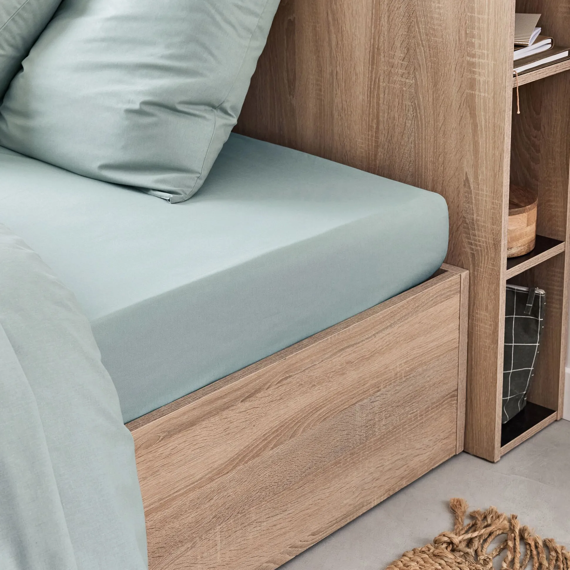 De 140x200cm, ce drap housse convient pour un matelas standard d’une épaisseur inférieure ou égale à 25cm. Ses bonnets de 30cm enveloppent alors parfaitement les angles pour un excellent maintien du drap au fil des nuits. 100% coton, ce drap housse offre un toucher doux et agréable, promesse de nuits paisibles. Bleu calaluna, ce linge de lit est reconnu en chromathérapie pour favoriser le sommeil. Une nuance inspirée des eaux translucides de Méditerranée.