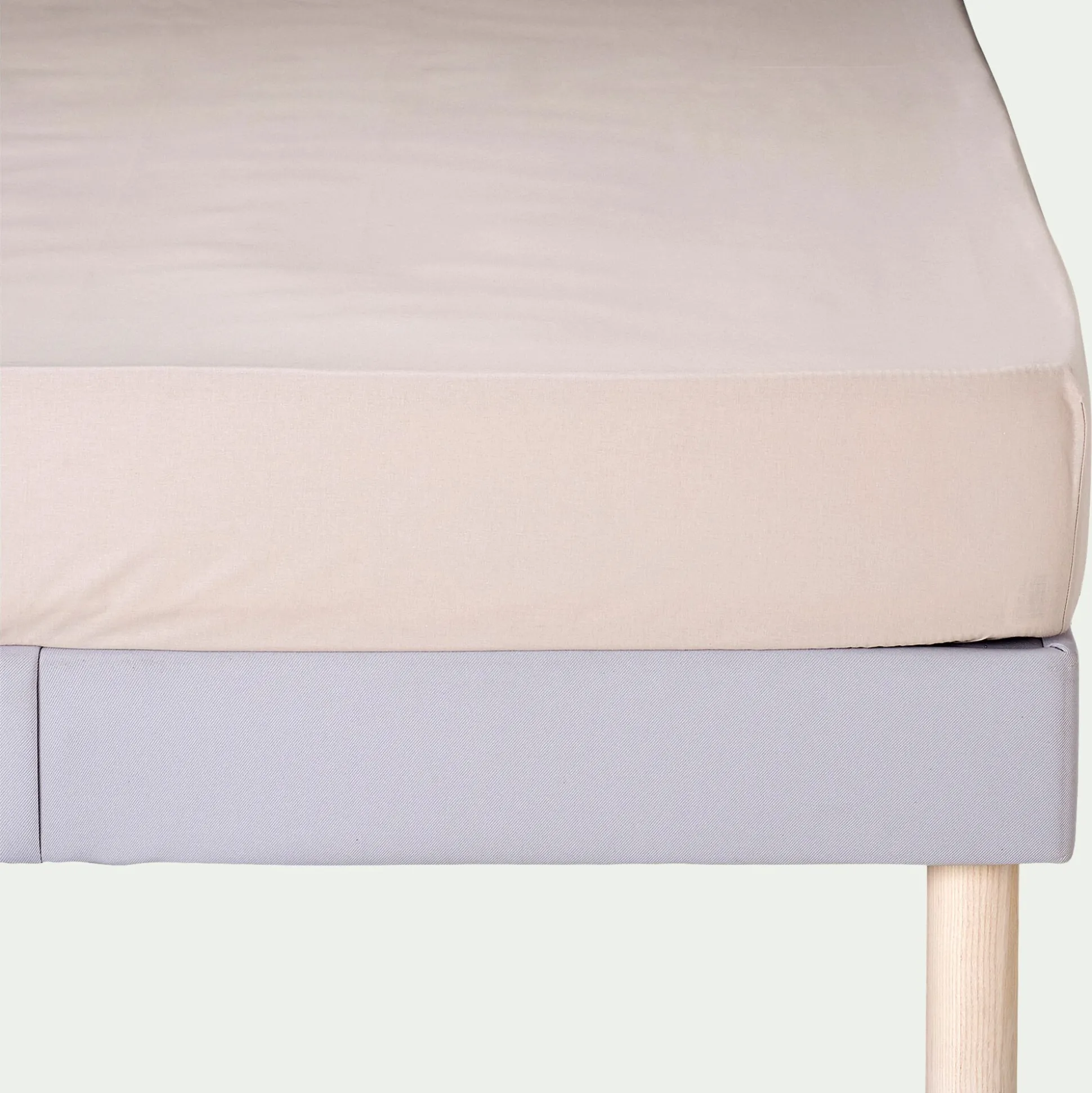 De 160x200cm, ce drap housse convient pour un matelas Queen Size d’une épaisseur inférieure ou égale à 20cm. Ses bonnets de 25cm enveloppent alors parfaitement les angles pour un excellent maintien du drap au fil des nuits. 100% coton et pourvu d’un tissage serré de 57 fils/cm2, ce drap housse offre une belle douceur au toucher, promesse de nuits paisibles. En beige alpilles, ce drap housse s’associe au linge de lit Calanques de la même couleur pour une chambre à coucher monochrome, élégante et intemporelle. Le drap s’assort aussi parfaitement aux différentes teintes de notre palette méditerranéenne pour un lit à votre image.