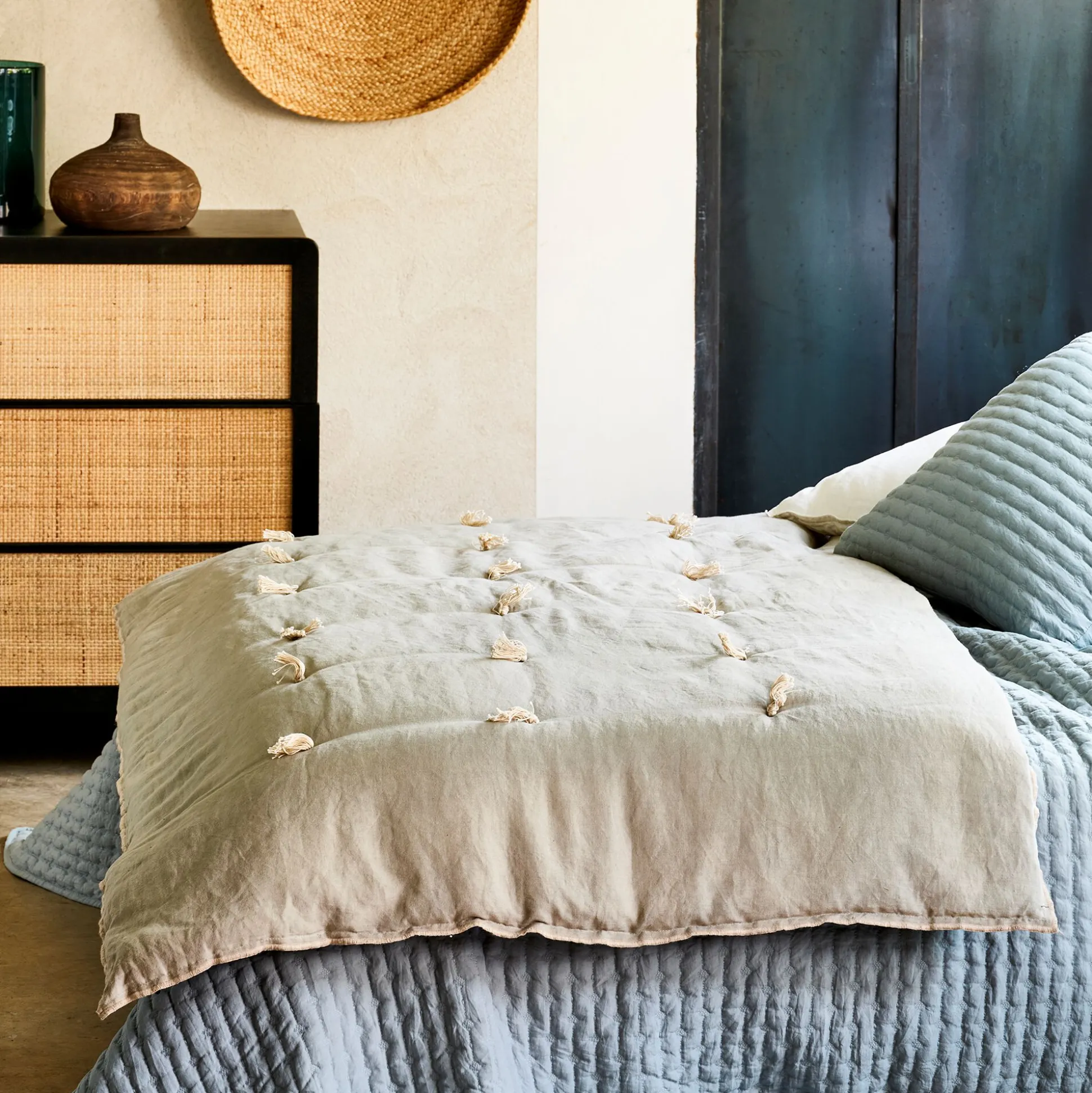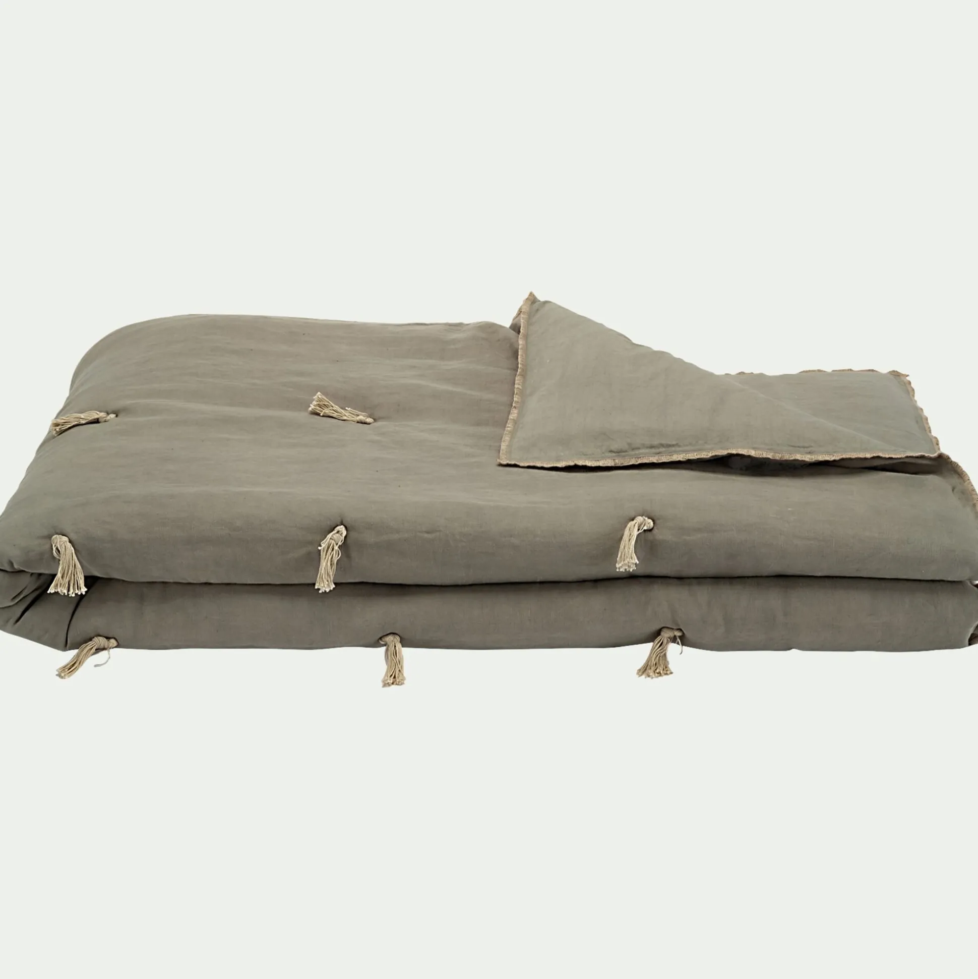 L’édredon Elina, d’un joli coloris vert olivier est un accessoire incontournable lorsque l’on souhaite se créer un coin cocooning. Tissé en coton et lin, cet édredon apportera à la fois une touche déco à votre lit ainsi qu’un peu de chaleur durant les nuits de grand froid. Doux et confortable, il présente un gonflant inimitable grâce à ses 5 cm d’épaisseur. Invitation à la détente, sa robe arbore des détails en passepoil noirs : une garniture en relief située sur les bordures pour souligner les traits de l’édredon. Ce fin liseré est accompagné de quelques pompons pour une touche fantaisiste et bohème. Ce linge de maison saura vous couvrir de tendresse.