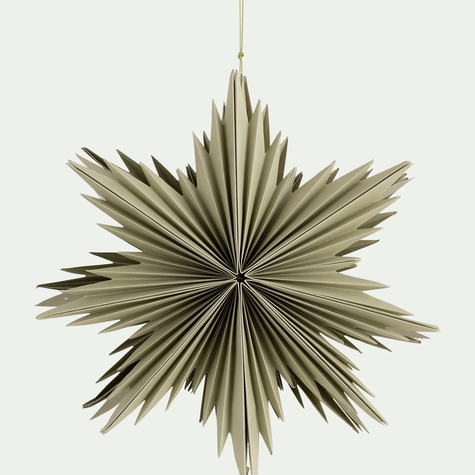 Cette grande étoile en papier déploie ses 8 branches dans un élégant style origami. Son pliage soigné lui confère du volume, idéale pour insuffler l’esprit de Noël. Dans un coloris vert, elle s’inscrit dans la palette traditionnelle des fêtes et trouve sa place aussi bien accrochée au sapin, suspendue à une porte ou mise en scène dans une composition murale. Une décoration de Noël légère et poétique qui apporte de la magie en toute simplicité.