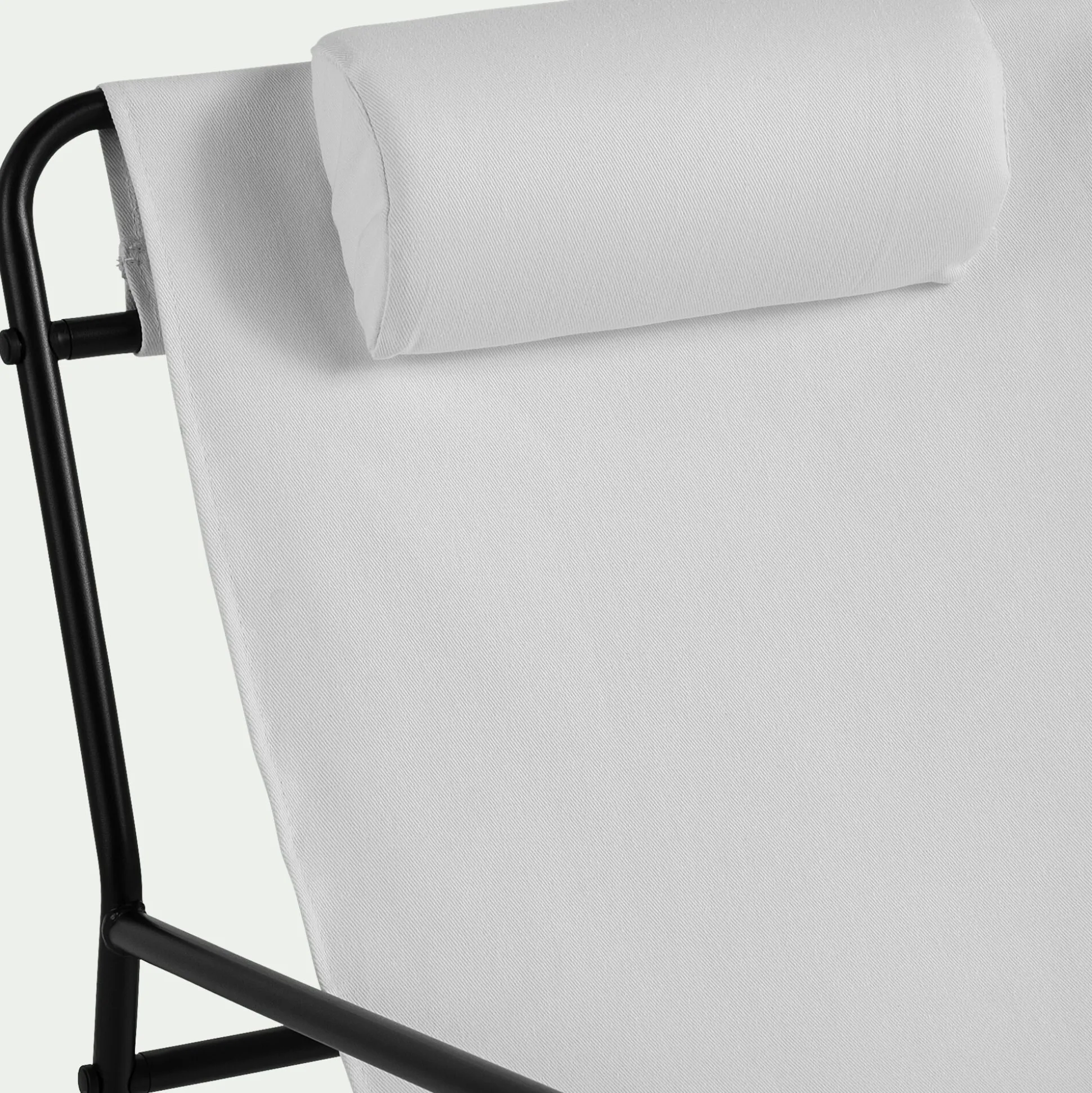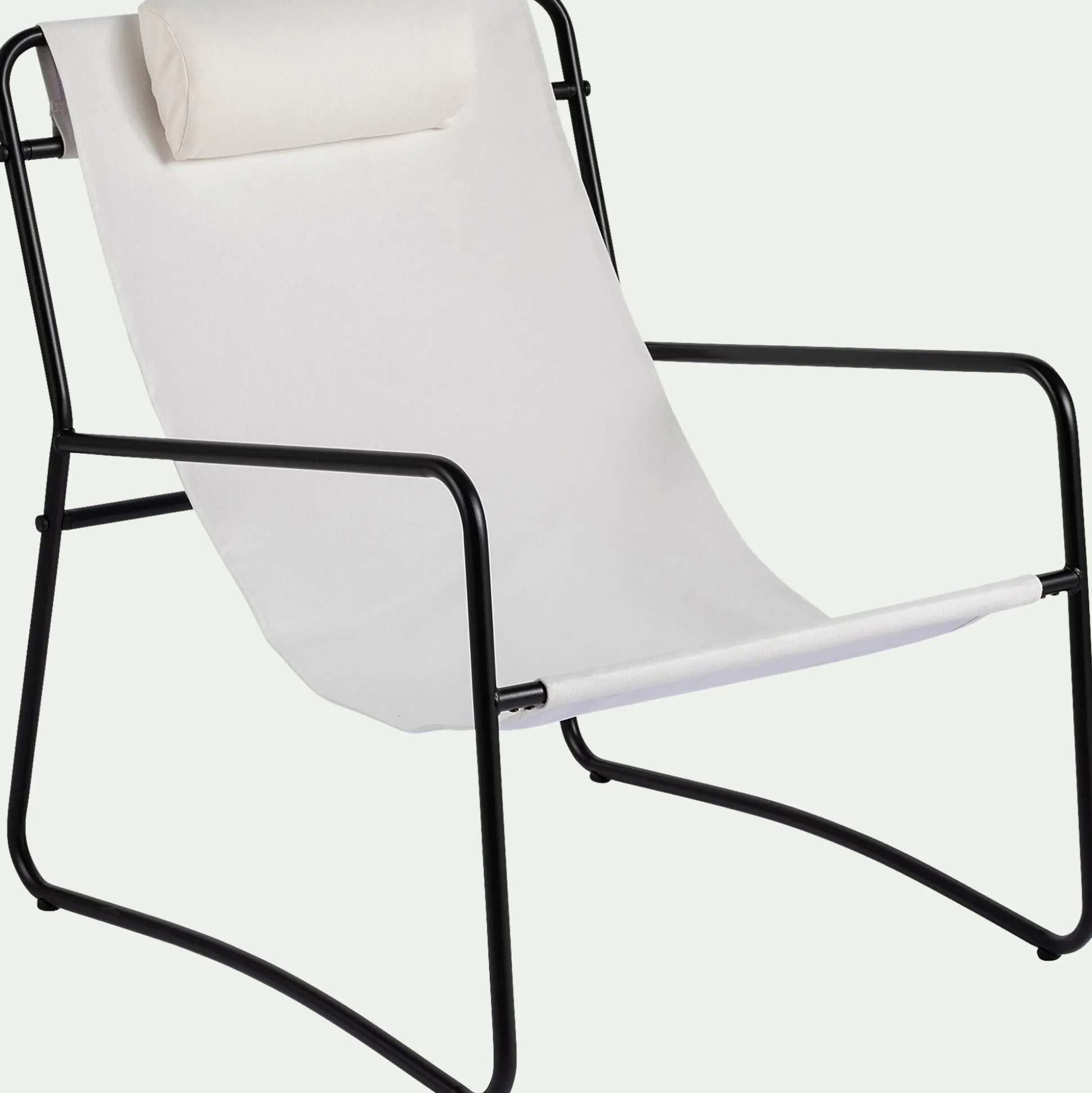 Profitez de votre jardin ou de votre terrasse avec le fauteuil Jeff. Inspiré de la chilienne, ce fauteuil de jardin se présente sous la forme d’une toile tendue. Cette dernière épouse parfaitement vos formes pour un incroyable moment de détente. Un appui-tête amovible permet de vous délasser complètement, la nuque reposée sur ce petit coussin. Ce fauteuil de jardin blanc propose également des accoudoirs pour un plus grand confort.