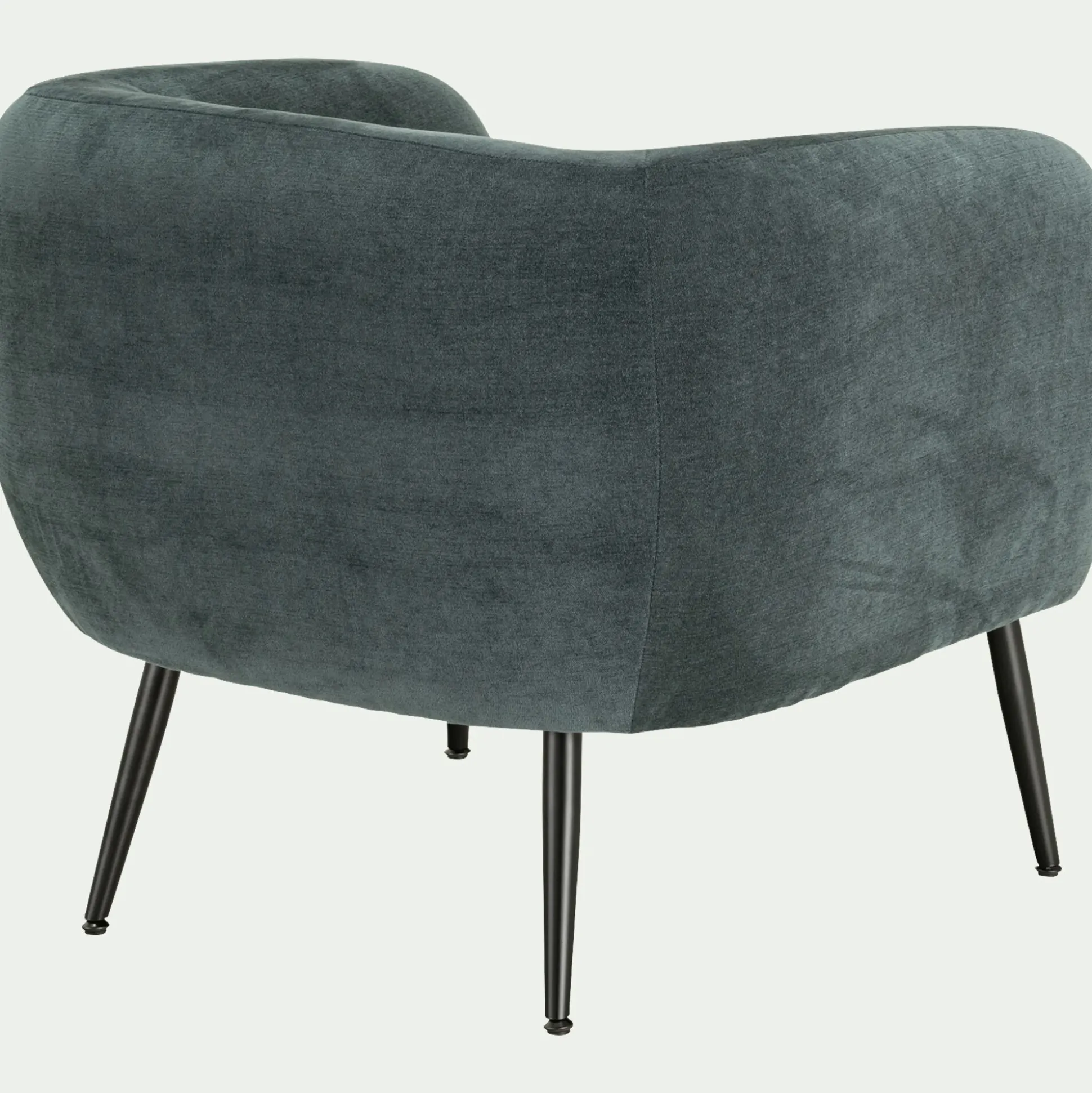 Ce fauteuil avec accoudoirs tout en rondeur est une véritable invitation à la détente. Moelleuse, l’assise de ce siège est généreuse et ses lignes arrondies lui donnent un look à la pointe de la tendance. Son revêtement de couleur bleu viendra ajouter une note colorée à votre pièce de vie et vous pourrez aisément l’accorder avec le reste de votre mobilier et quel que soit le style de votre déco.