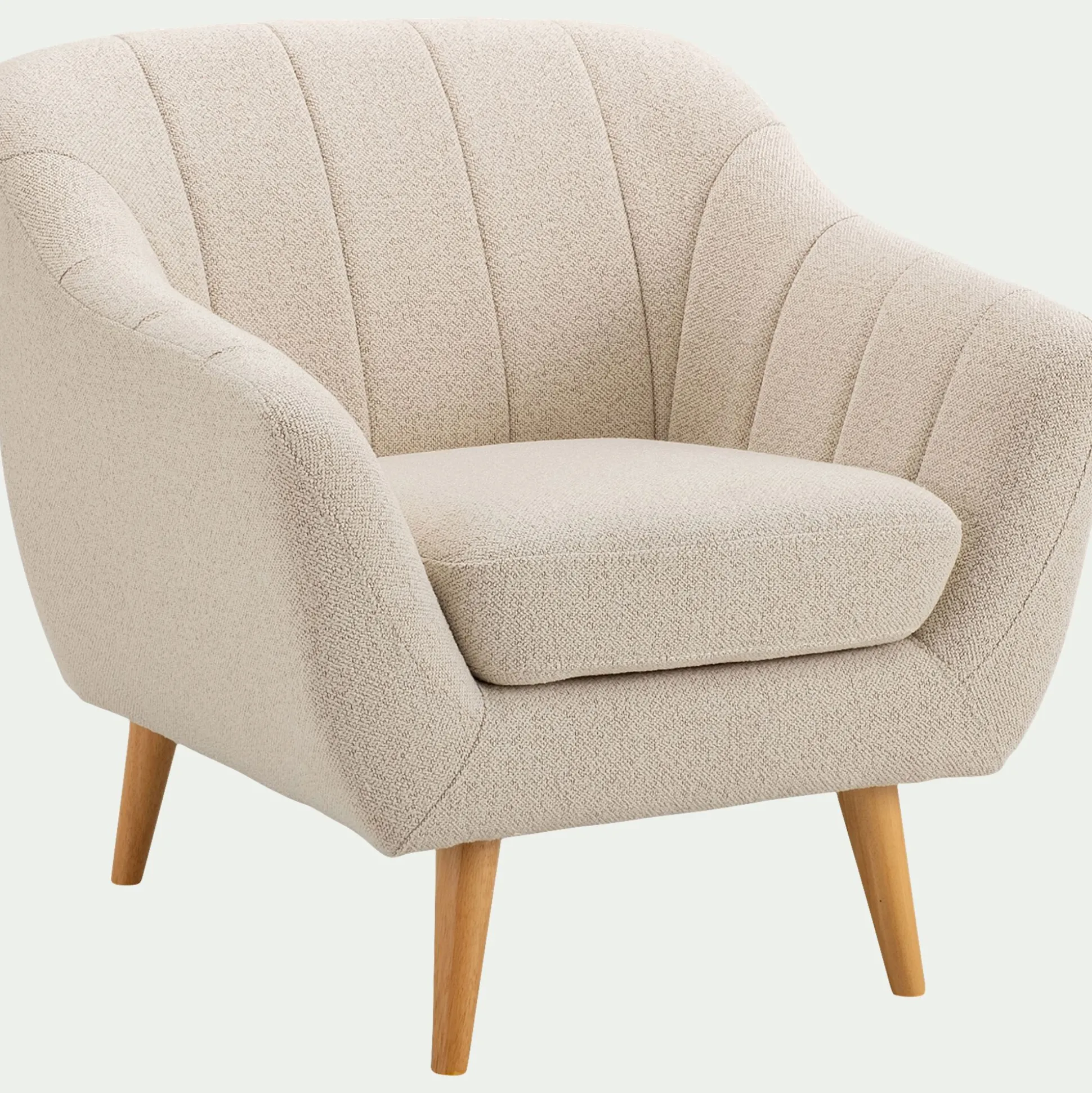 Créez une ambiance vintage avec ce fauteuil en tissu beige. Avec son assise moelleuse et son dossier matelassé, il offre un excellent confort d’assise. Son coloris beige adoucit votre décoration d’intérieur et apporte une note lumineuse à l’ensemble. Ce fauteuil beige est souligné par un piètement en hévéa, une essence de bois claire qui couronne le tout d’une touche chaleureuse. Résolument rétro, le design de ce fauteuil s’inspire d’une coquille Saint-Jacques. Découvrez le reste de la gamme Shell qui se compose de canapés, de poufs et de chaises pour vous offrir un bel ensemble qui saura mettre en valeur votre pièce de vie.