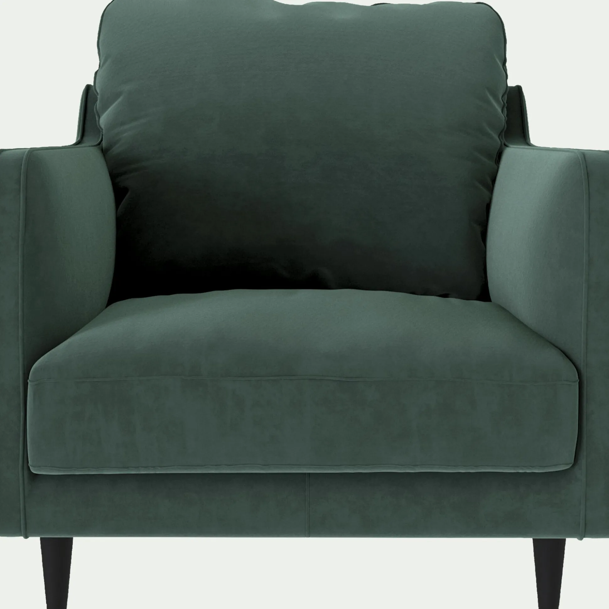 Ce fauteuil conjugue élégance italienne et confort absolu. Sa silhouette généreuse, dotée de deux larges accoudoirs, invite à la détente. L’assise moelleuse est garnie de plumes d’oie pour un accueil doux et enveloppant, parfaite pour les instants de lecture ou les longues conversations. Revêtu d’un tissu velvet au toucher velouté, il se décline dans un coloris vert sauge tout en douceur, qui apaise l’espace du salon. Fabriqué en Italie avec du bois certifié FSC®, ce fauteuil est aussi entièrement déhoussable pour un entretien facilité. Une pièce pensée pour durer, aussi belle que confortable.