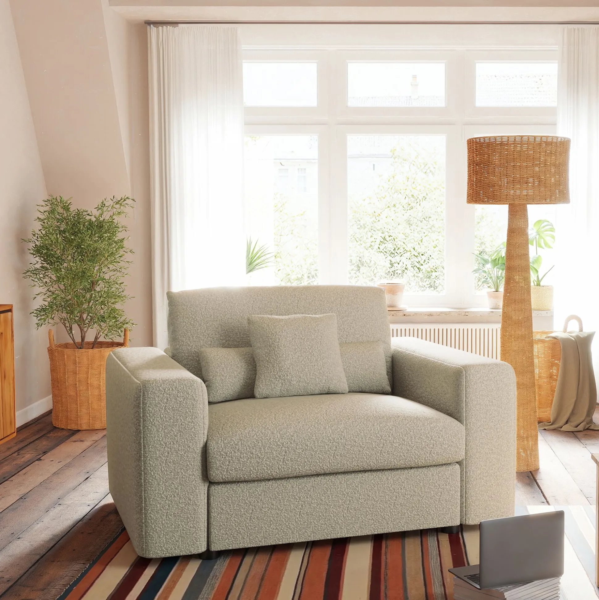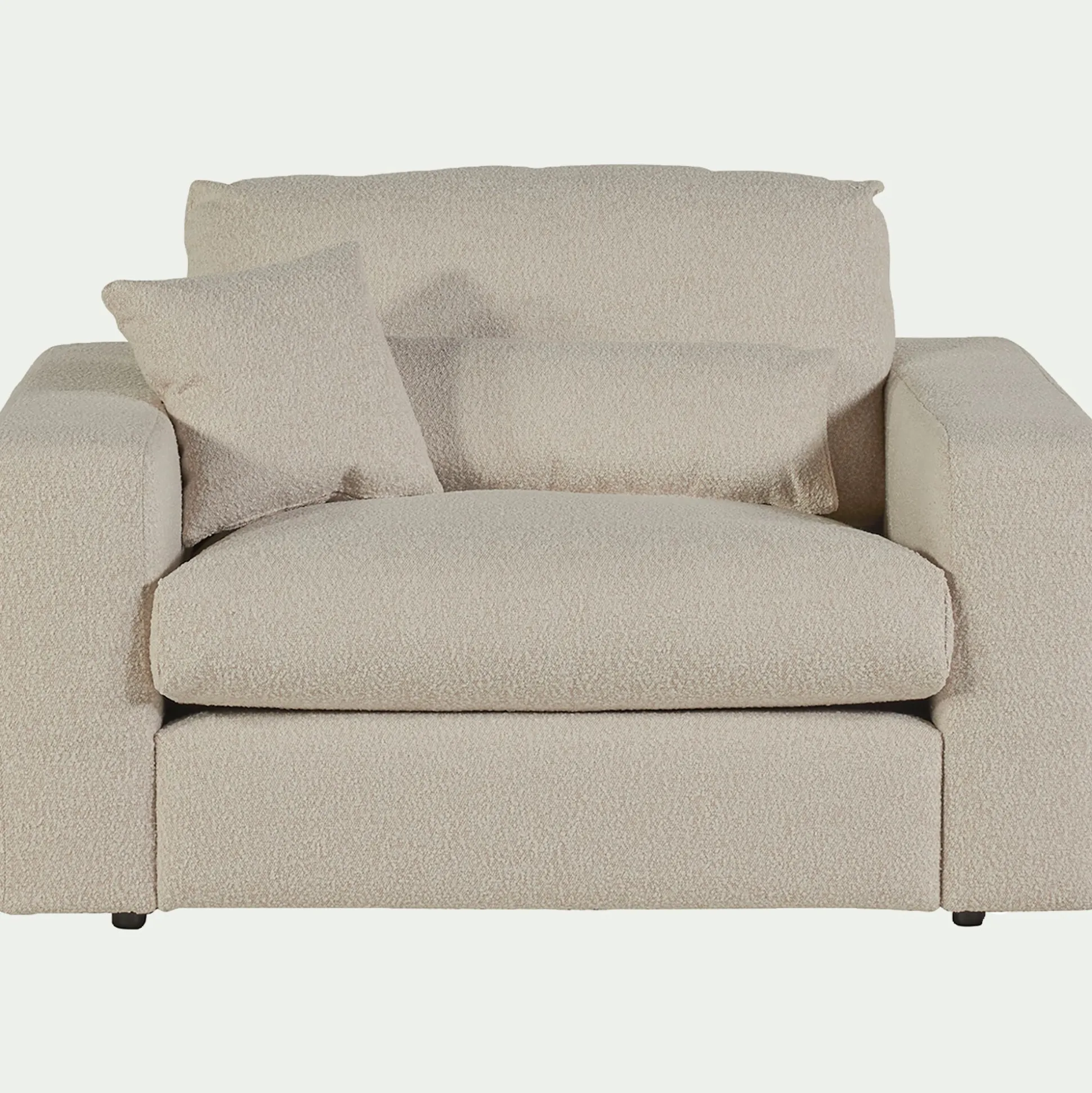 Le fauteuil Piuma est idéal pour se prélasser dans votre salon. Avec sa grande assise, ce fauteuil en tissu bouclette vous offre un confort exceptionnel. Il vous permet de vous détendre au coeur de coussins moelleux dans un nuage de douceur renforcé par son tissu délicat. Ce fauteuil de couleur blanc écru apporte également une touche design moderne et élégante à votre salon. Son tissu bouclette donne un côté cocooning qui vous permet de transformer votre pièce en un espace chaleureux.