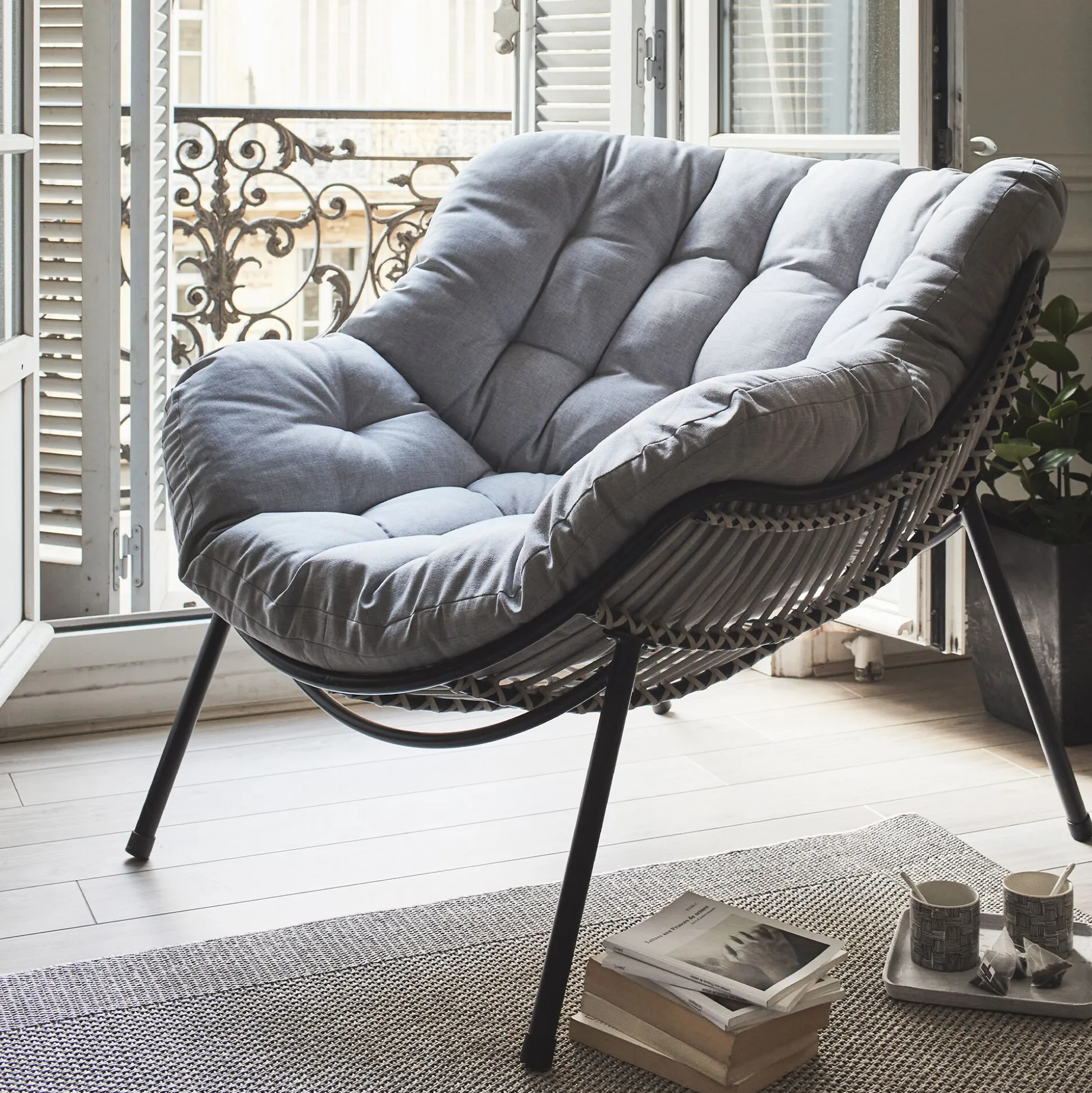 Coup de coeur pour ce fauteuil relax qui vous invite à la détente, voire à la paresse. Vous vous sentirez comme sur un nuage, lové dans ses coussins matelassés ultra moelleux au doux coloris gris. Sa forme enveloppante est rassurante et particulièrement confortable. Vous vous laisserez aller avec sérénité à des sensations réconfortantes et empreintes de douceur. Il peut venir compléter l’aménagement de votre jardin ou votre salon.