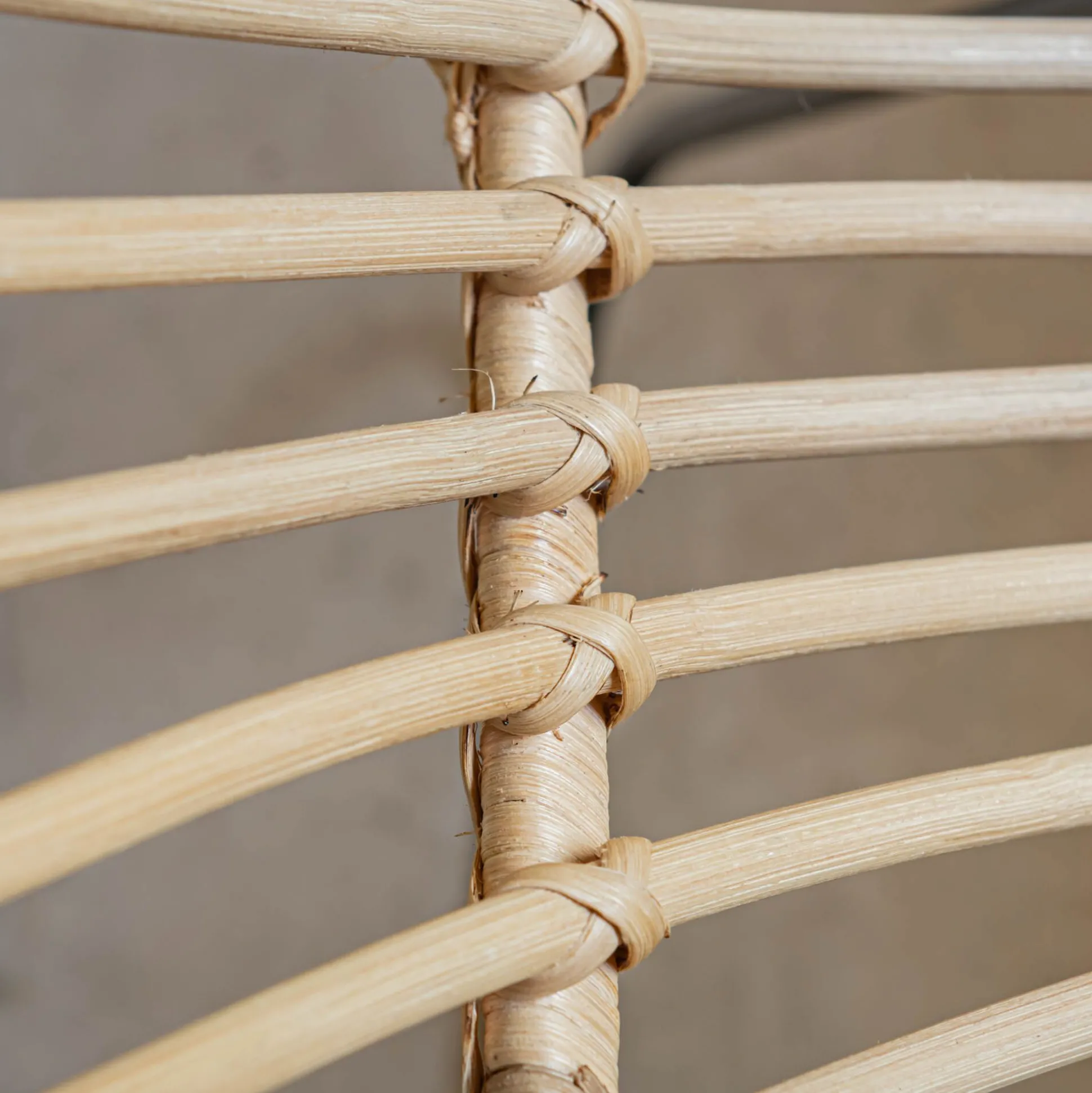 Ce fauteuil en rotin arbore une forme ronde, emplie de douceur. Le rotin enveloppe la structure en métal. Ce travail minutieux offre une assise en forme de coupole, une belle forme organique qui fait naître une atmosphère cocooning. Cette assise naturelle repose sur un piétement en métal filaire. Le design est simple et apporte une touche de modernité. Rotin et métal noir se marient ensemble pour proposer un fauteuil aux accents nomades. Ce fauteuil en rotin se place dans un salon, près du canapé, ou bien dans une salle à manger. Il complète parfaitement une table dans le cadre d’une déco dépareillée, très tendance. Brut ou agrémenté de quelques coussins, il offre confort et style à votre intérieur.