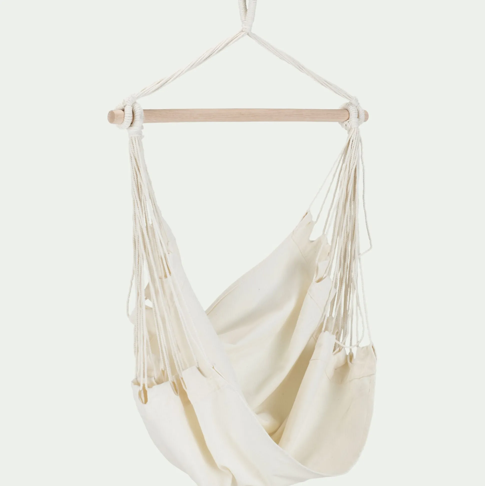 D’un confort sans pareil, le fauteuil suspendu Lena est également un atout décoratif dans le jardin. Ce hamac en tissu et en bois FSC ® se balance doucement au grès de la brise. Lové à l’intérieur, vous êtes bercé par le chant des cigales et les rires des enfants. Cette chaise suspendue arbore un coloris blanc écru, chaleureux et intemporel. Avec ses franges, elle habille et embellit l’espace en un clin d’oeil.