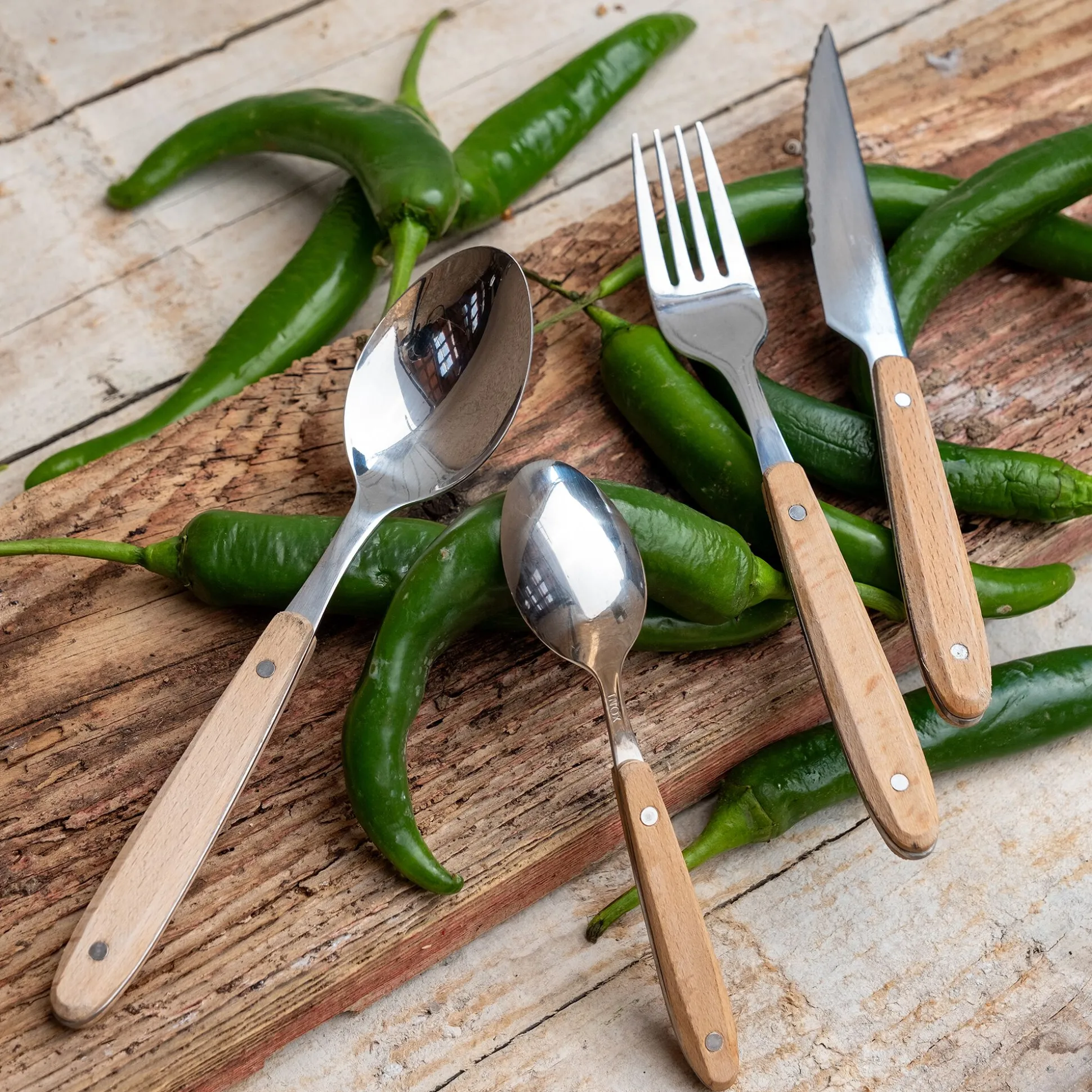 Inox et manche en bois de hêtre.