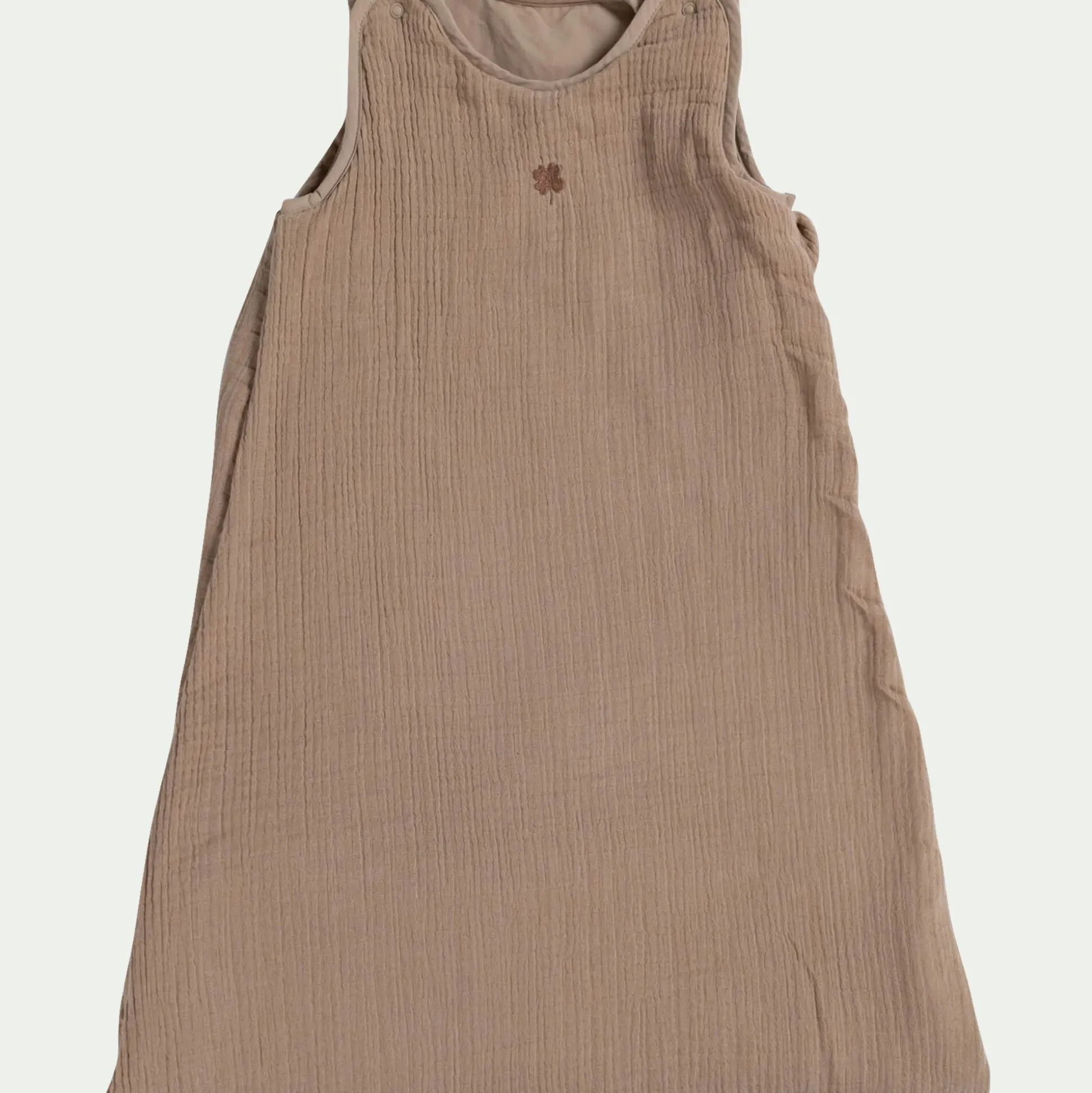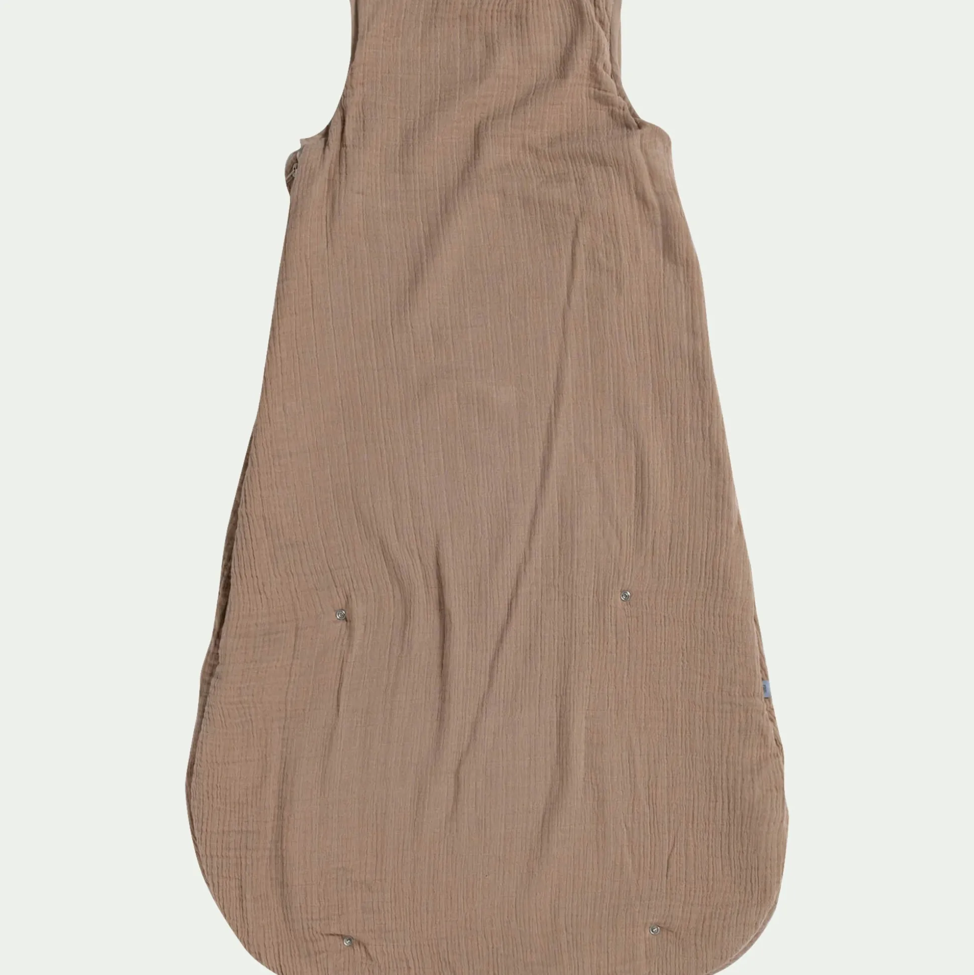 Cette gigoteuse pour bébé, d’un doux coloris marron noisette neutre, allie confort et praticité. Confectionnée au Portugal, elle associe une gaze de coton bio légère en surface à un intérieur en coton bio, pour une douceur optimale et une chaleur assurée grâce à un garnissage polyester de 80 g/m². Sa fermeture zippée facilite l’habillage tandis que les boutons-pression aux épaules et au bas permettent d’adapter la longueur pour accompagner la croissance de bébé. Les finitions soignées, avec une délicate broderie et un biais uni, ajoutent une touche élégante et épurée à ce cocon sécurisant et naturel.