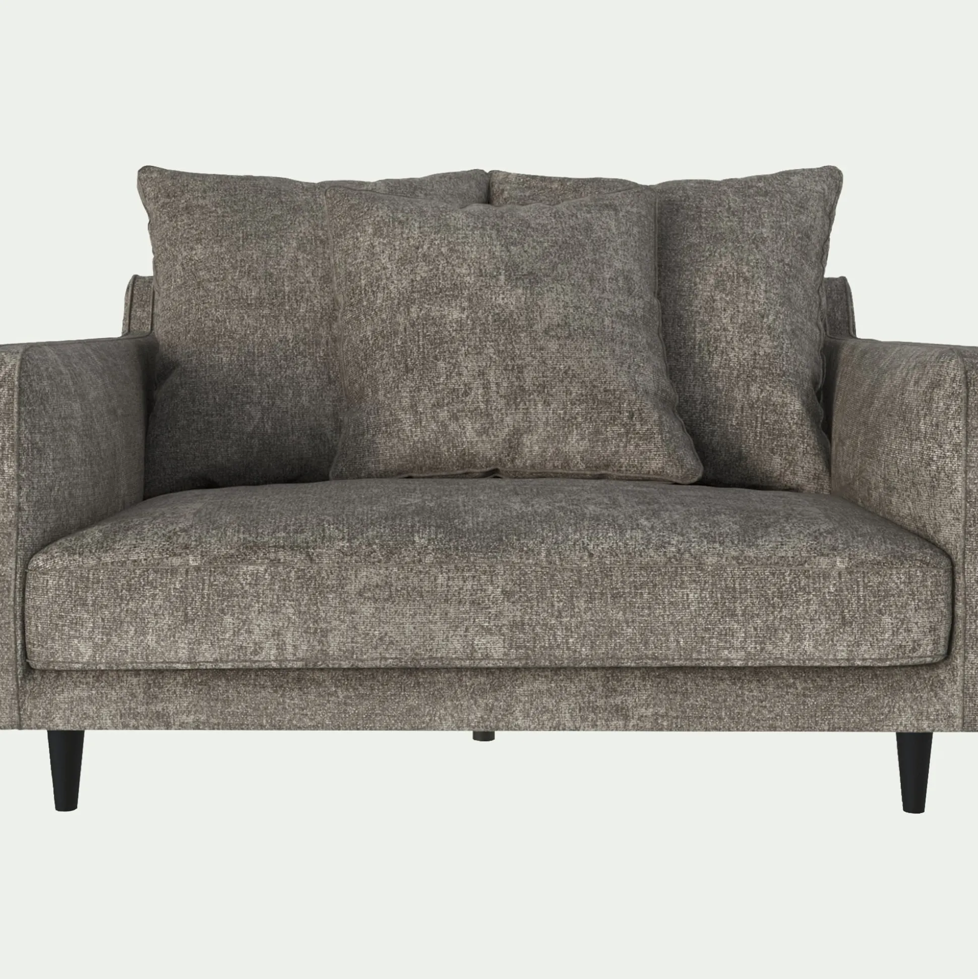 Assise et dossier : Assise en mousse polyurethane densité 30kg/m3 et couette en fibre polyester. Coussins dossier garnissage plumes d’oie et fibre polyester, 2 coussins de dos 60x60cm et 1 coussin 50x50cm.