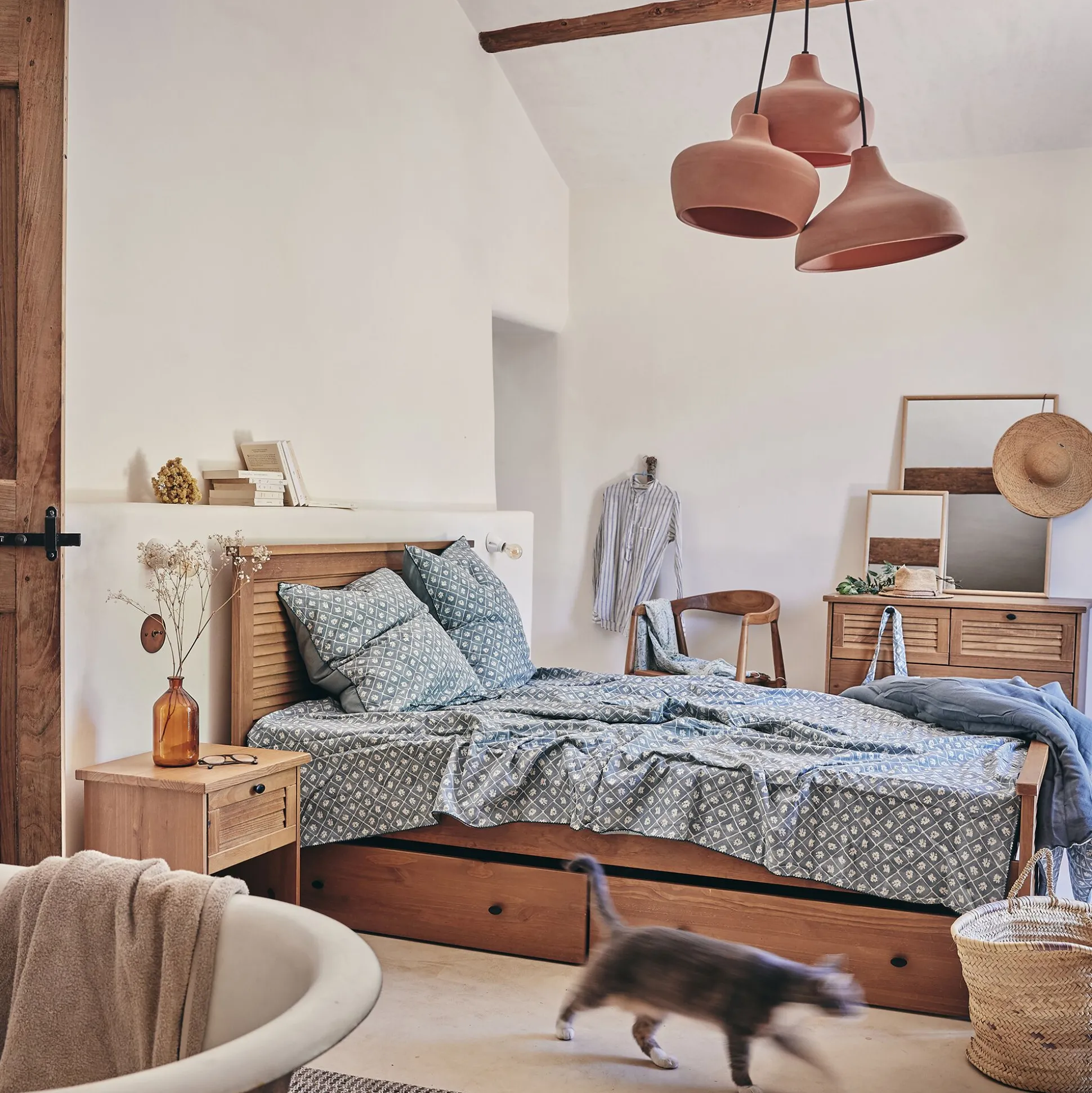 Housse de couette 240x220cm et 2 taies d’oreiller 63x63cm en coton lavé – bleu
