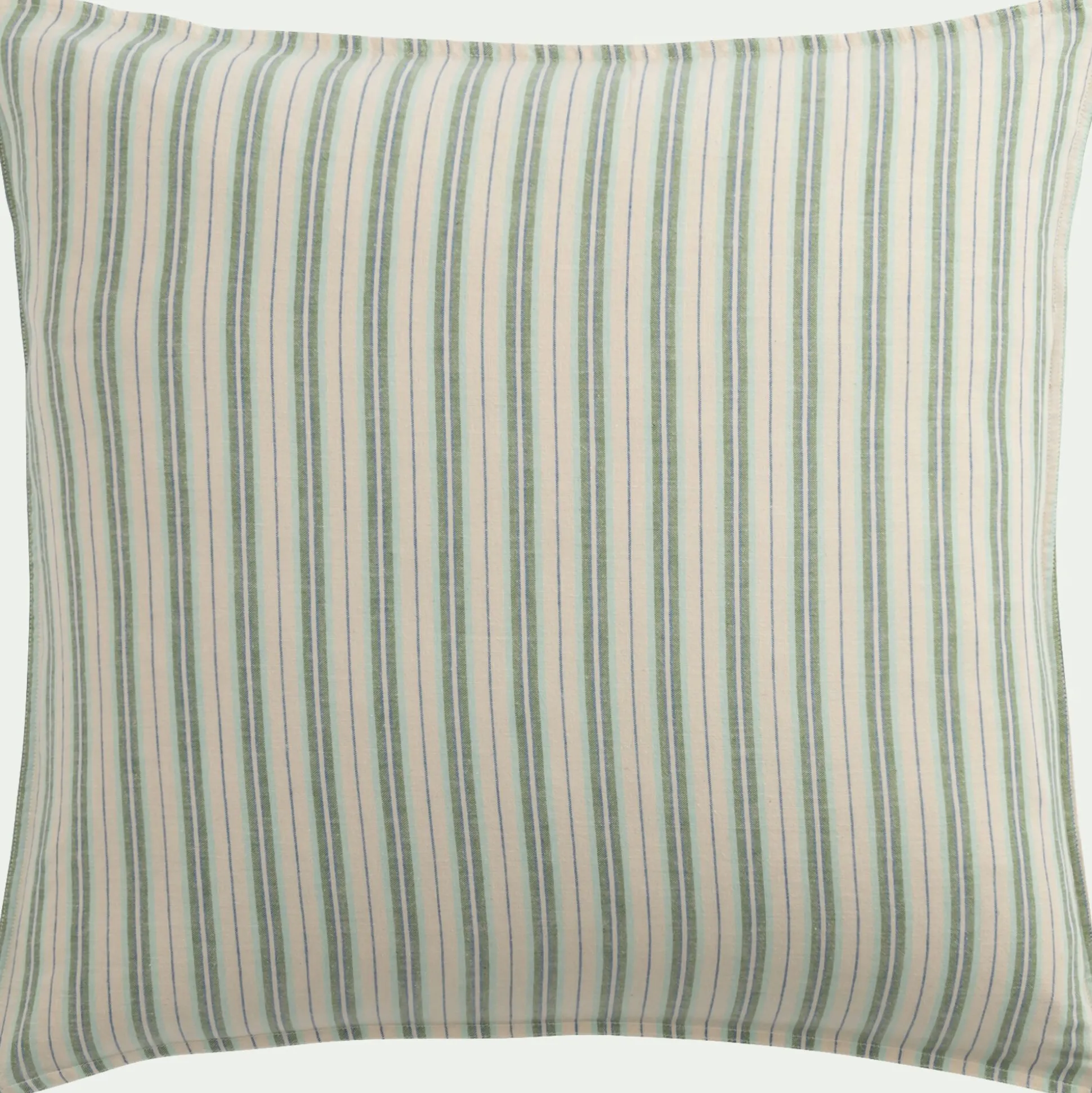 Housse de couette 240x220cm et 2 taies d’oreiller 63x63cm motif rayé en coton tissé teint lavé – bleu
