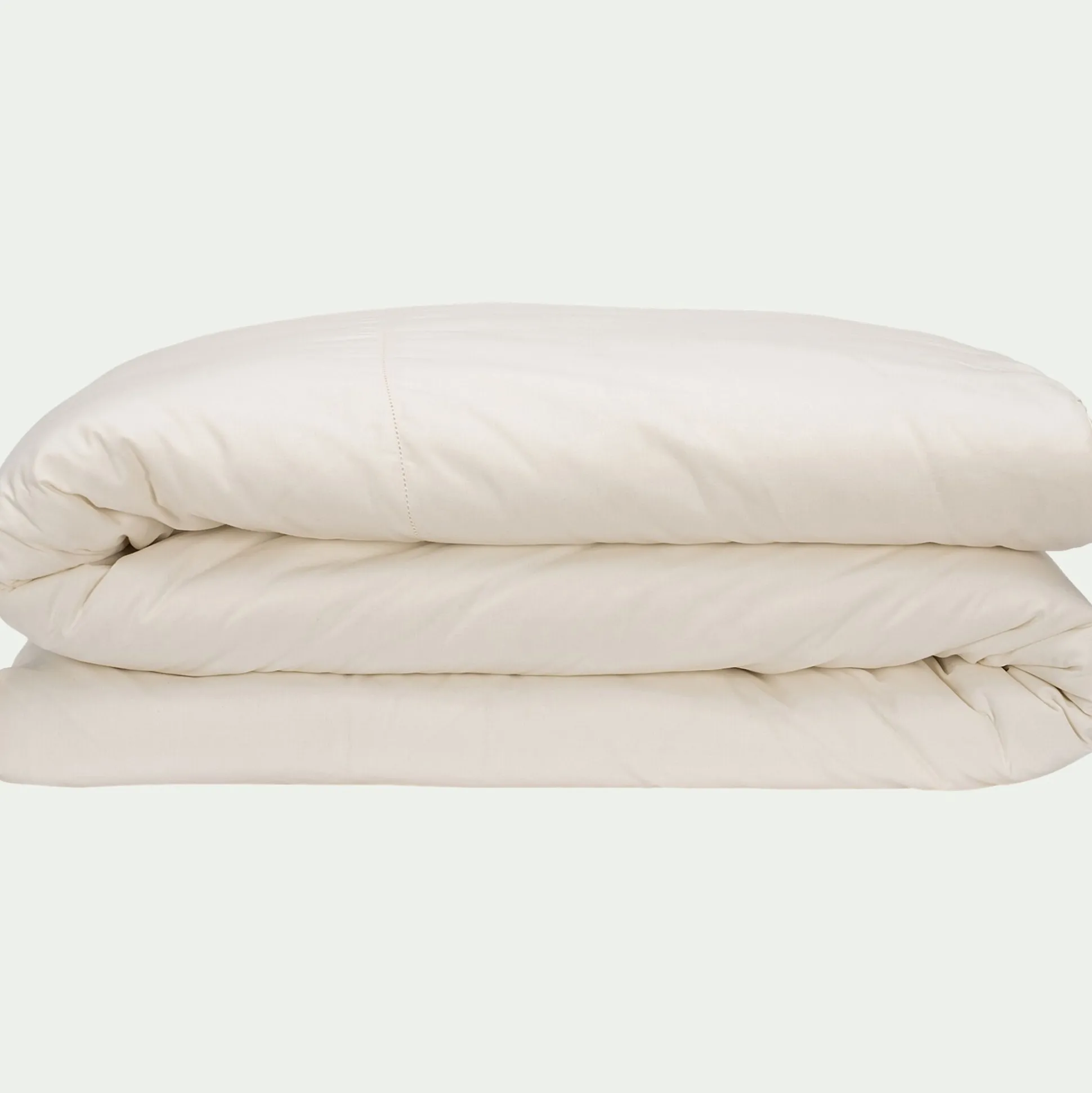 Glissez-vous sous cette housse de couette en coton bio pour passer de belles et paisibles nuits de sommeil. Cette housse de couette tissée en coton à partir de 57 fils/cm2, confectionnée au Portugal et certifiée GOTS et oeko-tex, est un linge de lit de qualité. D’une taille de 220×240 cm, c’est un élément essentiel qui vient compléter votre parure de lit de votre choix. Vous pouvez l’associer avec le drap plat, les taies d’oreiller et le drap-housse de la même gamme. Son coloris blanc, intemporel, s’accordera aisément avec la déco de votre chambre.