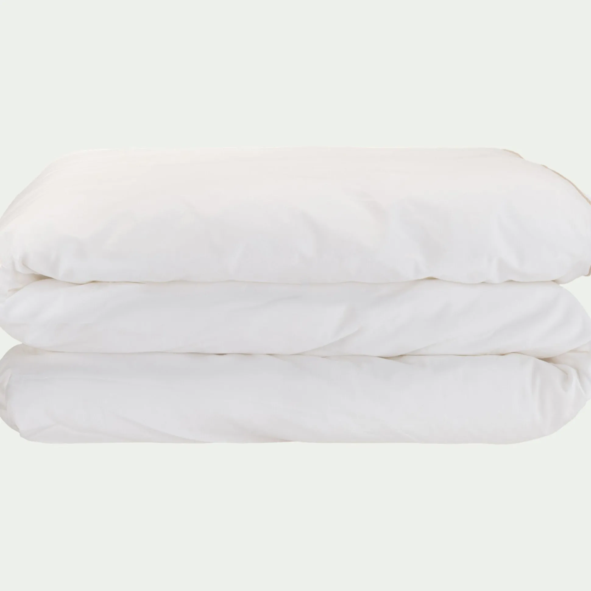 De très grande qualité, la housse de couette Ezio est confectionnée en percale de coton, un tissage serré qui assure une incroyable sensation de douceur et de fraîcheur. Entièrement blanche, cette housse de couette en percale de coton illumine la pièce de sa seule présence. L’ensemble est délicatement réhaussé d’un liseré tressé, détail beige qui apporte une touche d’authenticité. Cette housse de couette de 260×240 cm convient pour un grand lit de 160×200 cm.