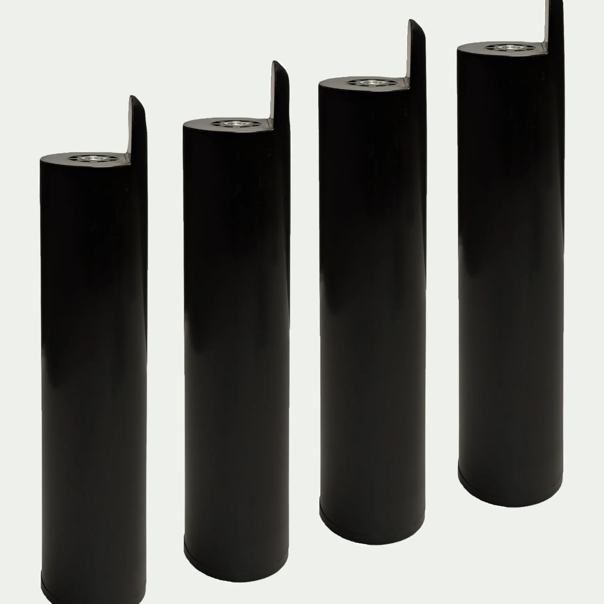 Découvrez ces 4 pieds de sommier spécialement conçus pour les cadres à lattes. Ils sont conçus en plastique résistant, alliant ainsi légèreté et solidité et vous garantissant un maintien fiable et durable de votre literie. Avec leur hauteur de 22 cm et leur diamètre de 50 mm, ils offrent un équilibre optimal. Leur coloris noir sobre s’intègre avec élégance à tous les styles de chambres de chambre à coucher. De plus, ils sont de fabrication française.