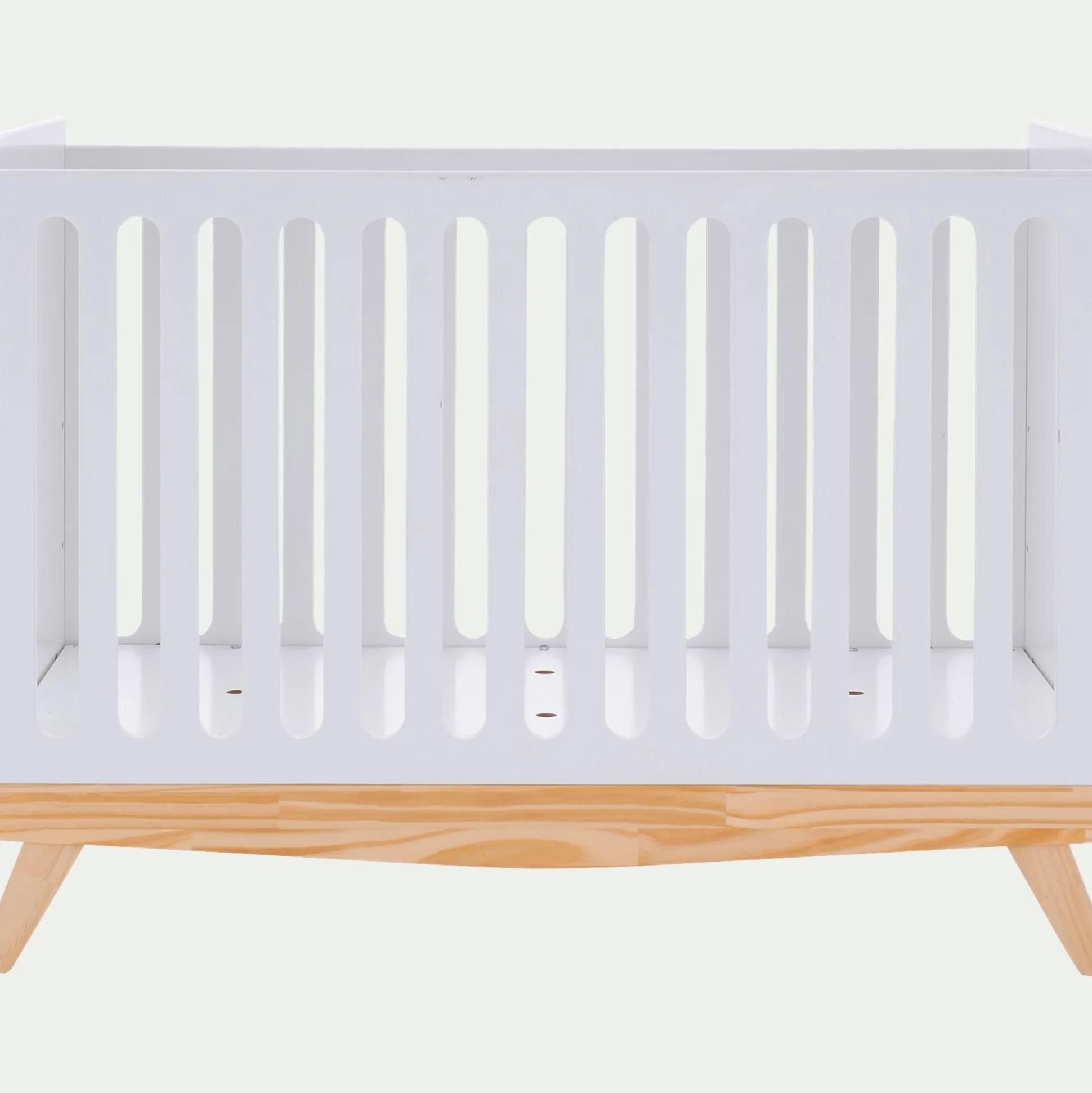 Le lit bébé Anaé mêle bois naturel et barreaux blancs pour créer un cocon doux, chaleureux et facile à intégrer dans une chambre mixte. Son design épuré et ses teintes lumineuses en font un essentiel au style intemporel. Pratique, il s’adapte à la croissance de bébé grâce à son sommier réglable sur deux hauteurs : en position haute pour les premiers mois, puis en position basse quand l’enfant commence à se redresser. Un lit à barreaux pratique et esthétique, pensé pour accompagner les premiers instants de vie en toute sérénité.