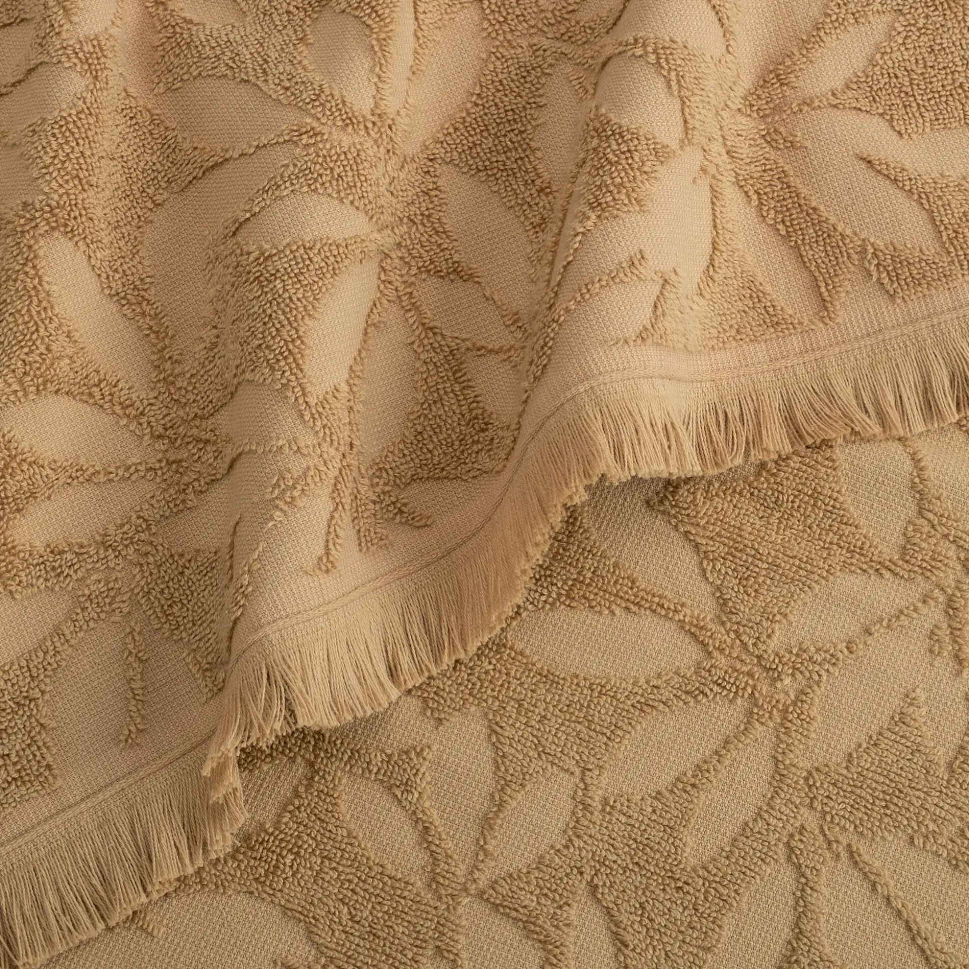 Le lot de 2 serviettes en beige sable apporte praticité et charme naturel. Leur motif floral en jacquard et leur finition frangée en font des serviettes élégantes, idéales pour accueillir. En coton 500 g/m², elles sont absorbantes et résistantes. Fabriquées au Portugal et certifiées Oeko-Tex, ces petites serviettes de 30×50 cm se rangent aisément et se sortent pour vos convives.