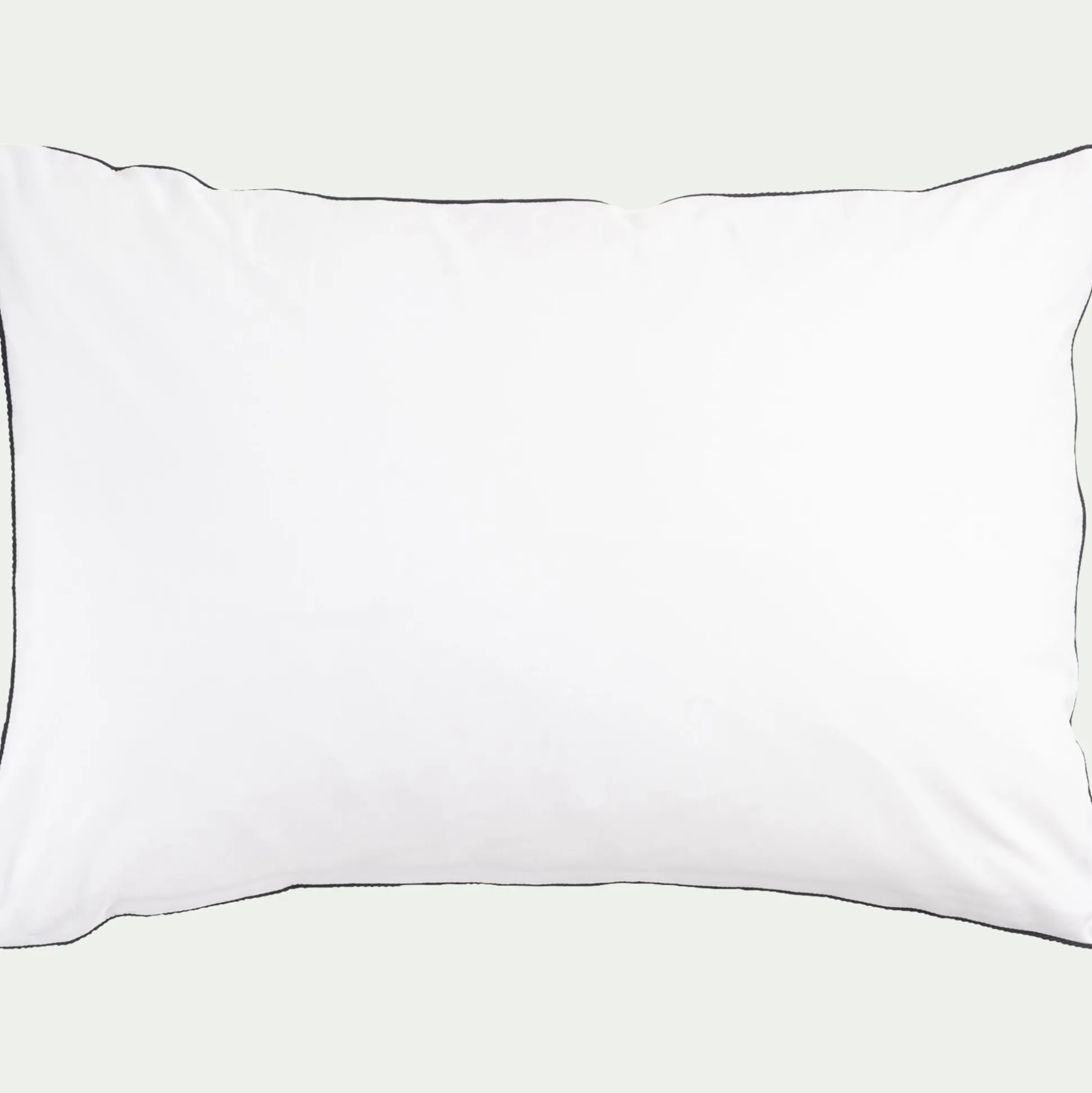 Lot de 2 taies d’oreiller en percale de coton 50x70cm avec liseré tressé gris calabrun – blanc