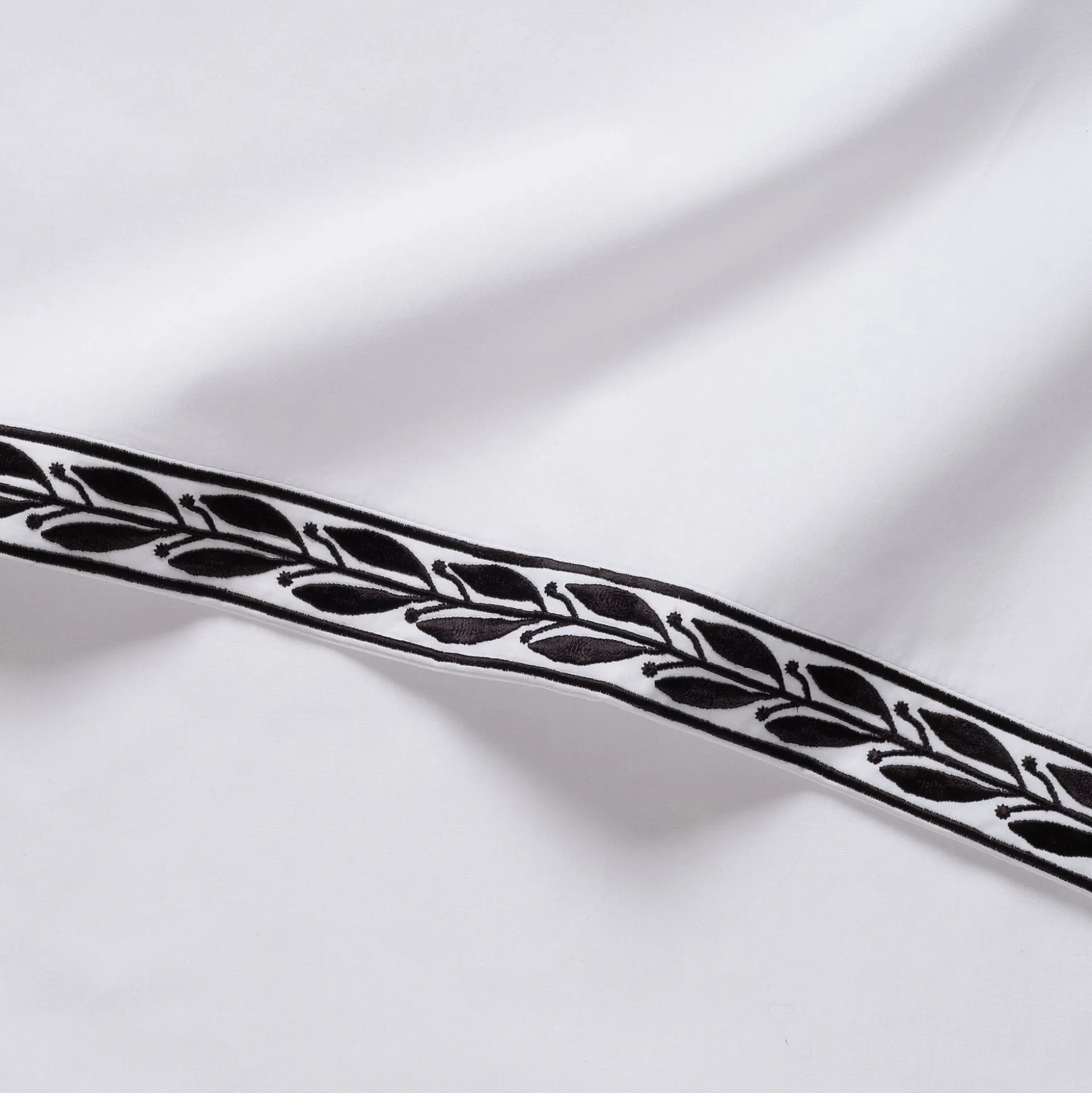 Apportez une touche d’éclat à votre lit avec les taies d’oreiller Kissos. Ces taies d’oreiller en percale de coton arborent un tissu uni, délicatement relevé par une frise noire. Brodé, ce liseré révèle un motif végétal aussi doux que poétique. Ces taies d’oreiller blanches conviennent pour des oreillers carrés de 65×65 cm. D’une belle simplicité, elles complètent n’importe quelle housse de couette avec élégance et cachet.