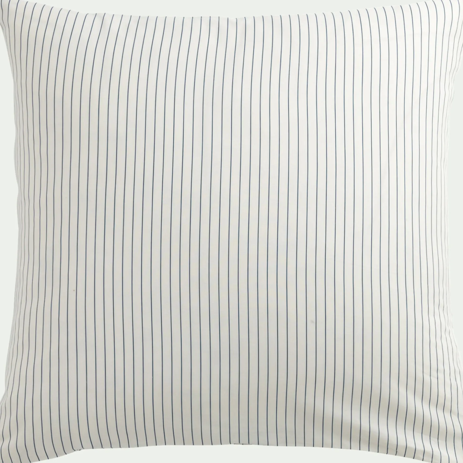 Ce lot de deux taies d’oreiller carrées (63×63 cm) arbore un motif de fines rayures bleues sur une base blanche, apportant une touche intemporelle et raffinée à la chambre. Douces et agréables au toucher, ces taies en coton offrent un confort optimal tout en étant respectueuses de la peau. Leur design élégant s’intègre aisément dans différents styles de décoration, ajoutant du charme à la literie.