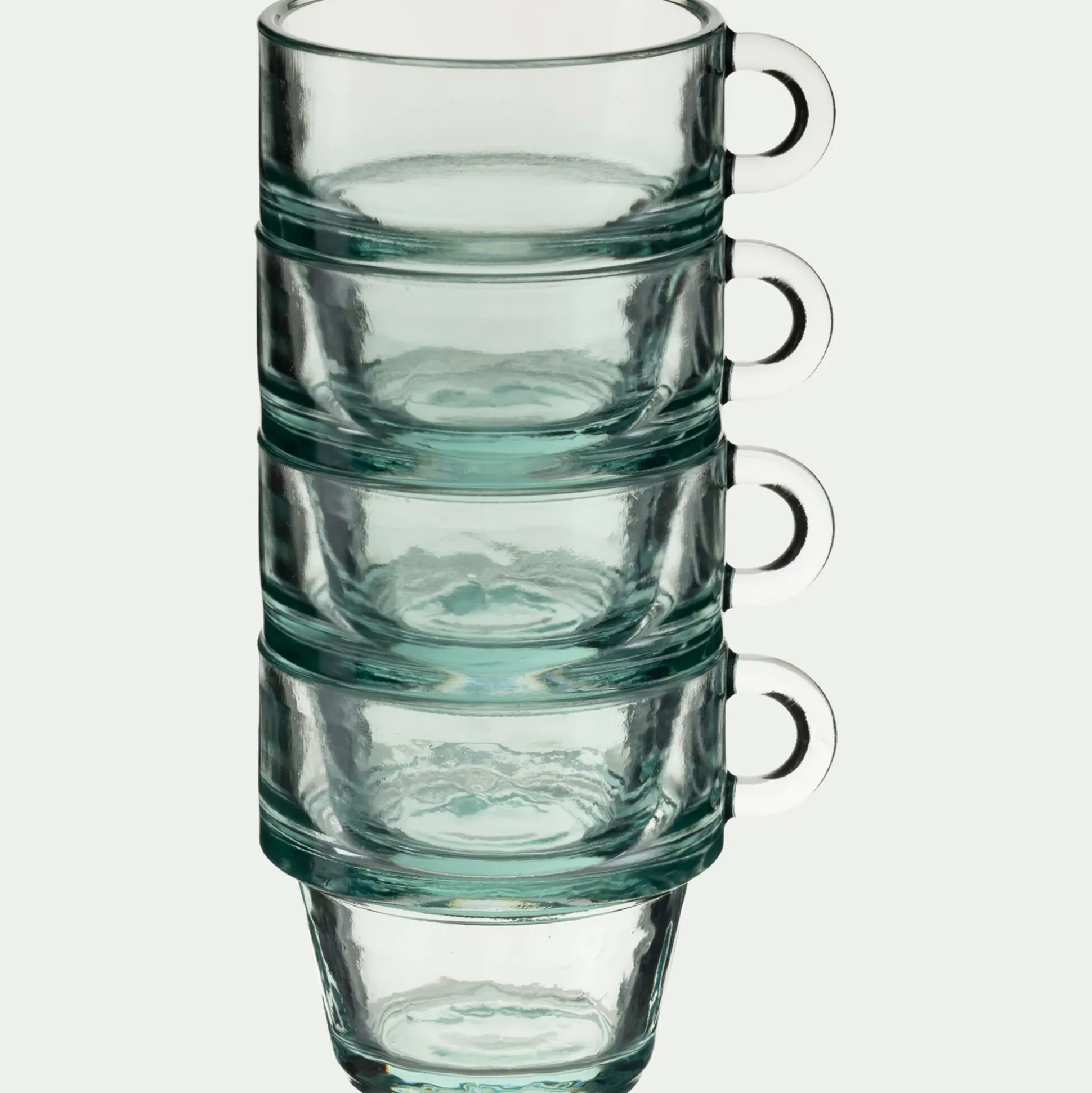 Découvrez ce lot de 4 tasses en verre, pour savourer vos boissons chaudes. La transparence et le design intemporel de ses tasses de 10 cl apportent une touche de raffinement à votre table de petit-déjeuner. Fabriquée en Espagne, cette collection de vaisselle au charme unique vous accompagnera à tous moments de la journée.